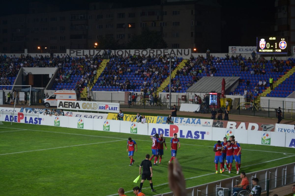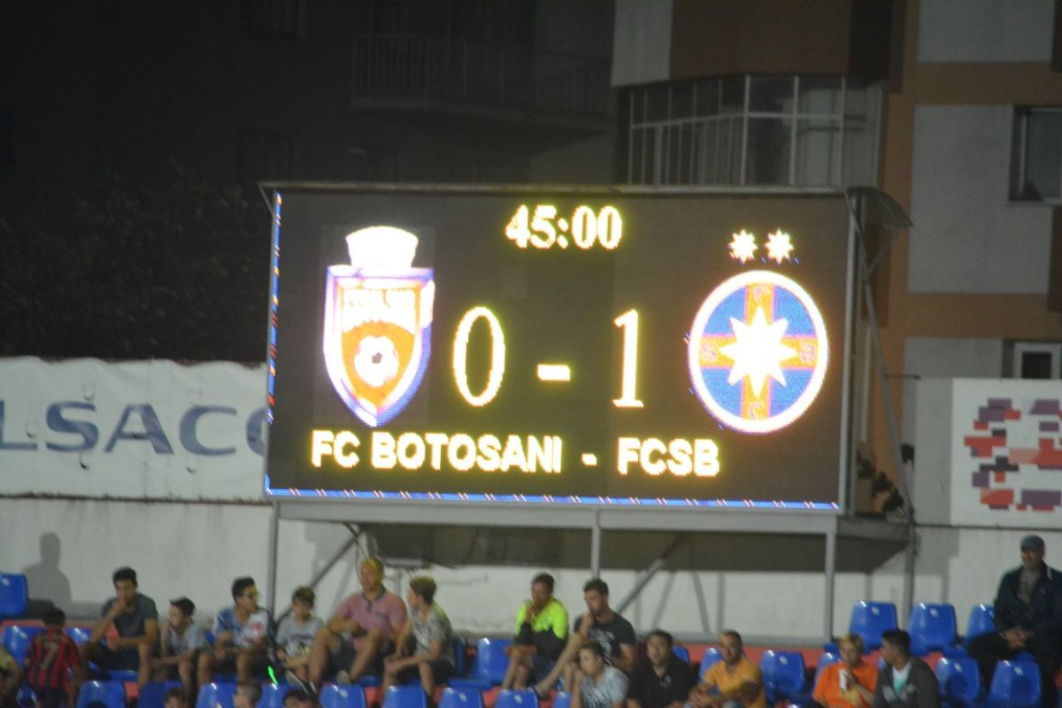 FCSB a deschis scorul pe Stadionul Municipal la ultima fază a primei reprize. FC Botoşani – FCSB este 0 – 1 la pauză, în sferturile Cupei Ligii.