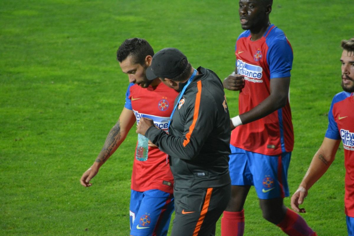 Leo Grozavu l-a aşteptat pe Albuţ la mijlocul terenului, reproşându-i probabil plasamentul de la gol.