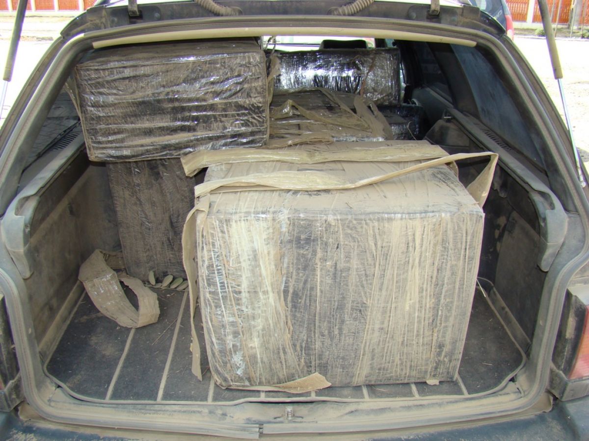 În maşină au fost descoperite nouă colete de diferite dimensiuni, iar în urma inventarierii s-a constatat că acestea conţineau 7.480 pachete pachete ţigări marca Ritm cu timbre de acciză Republica Moldova.