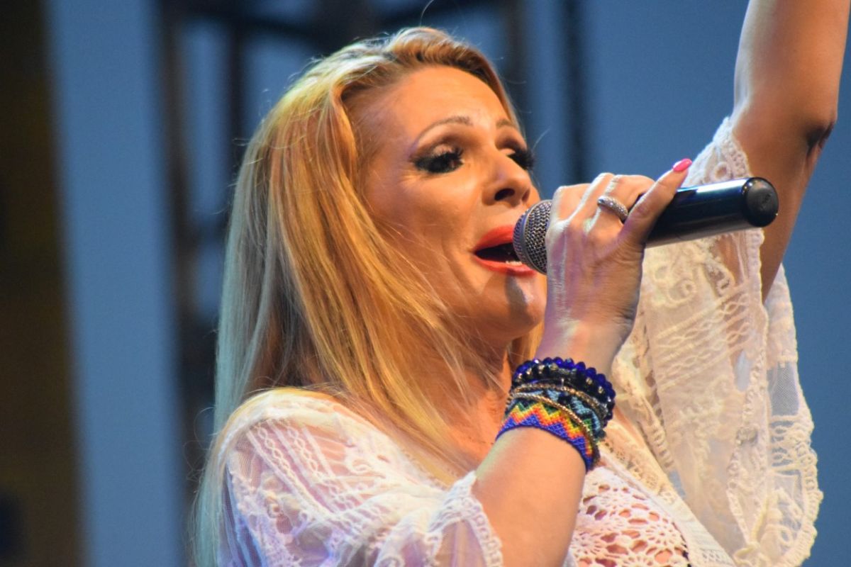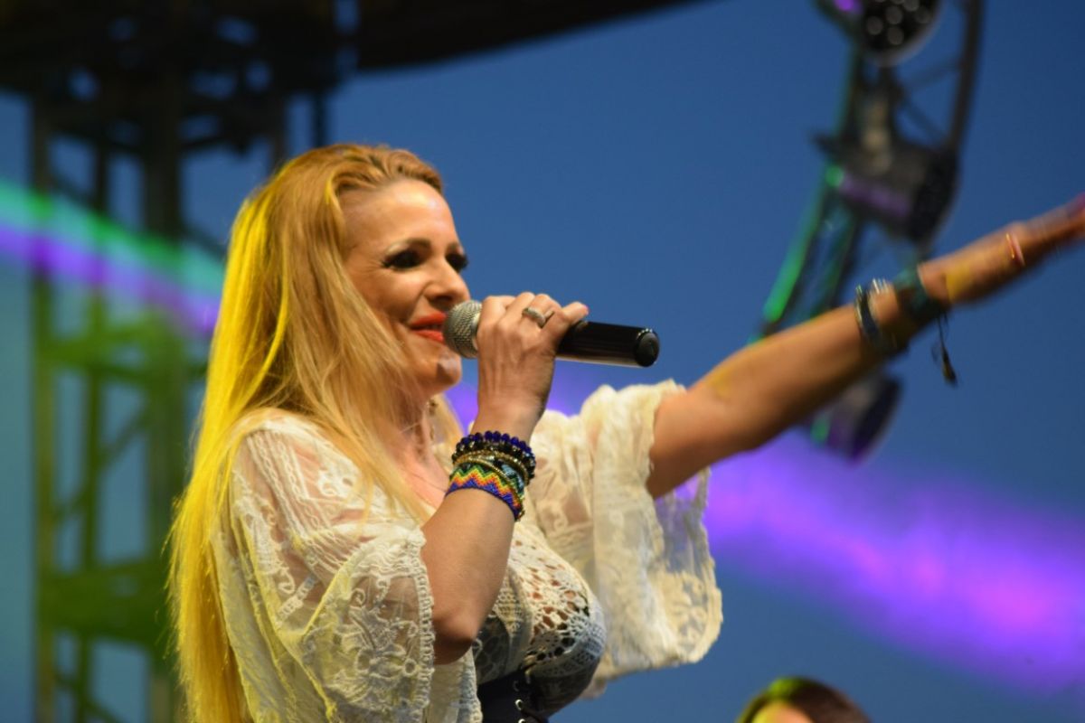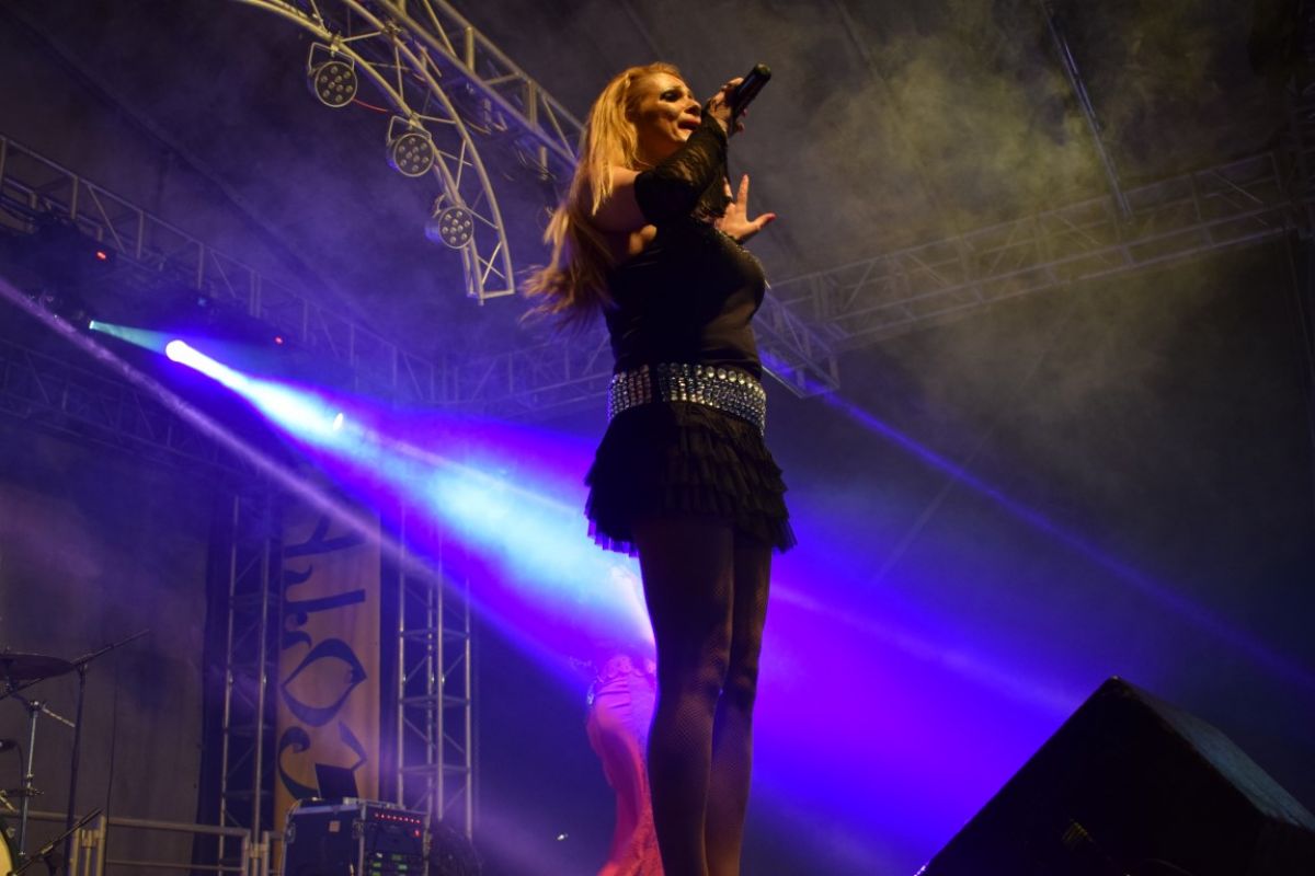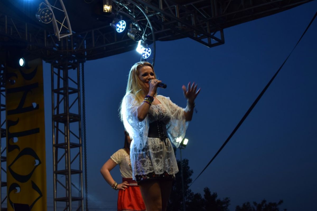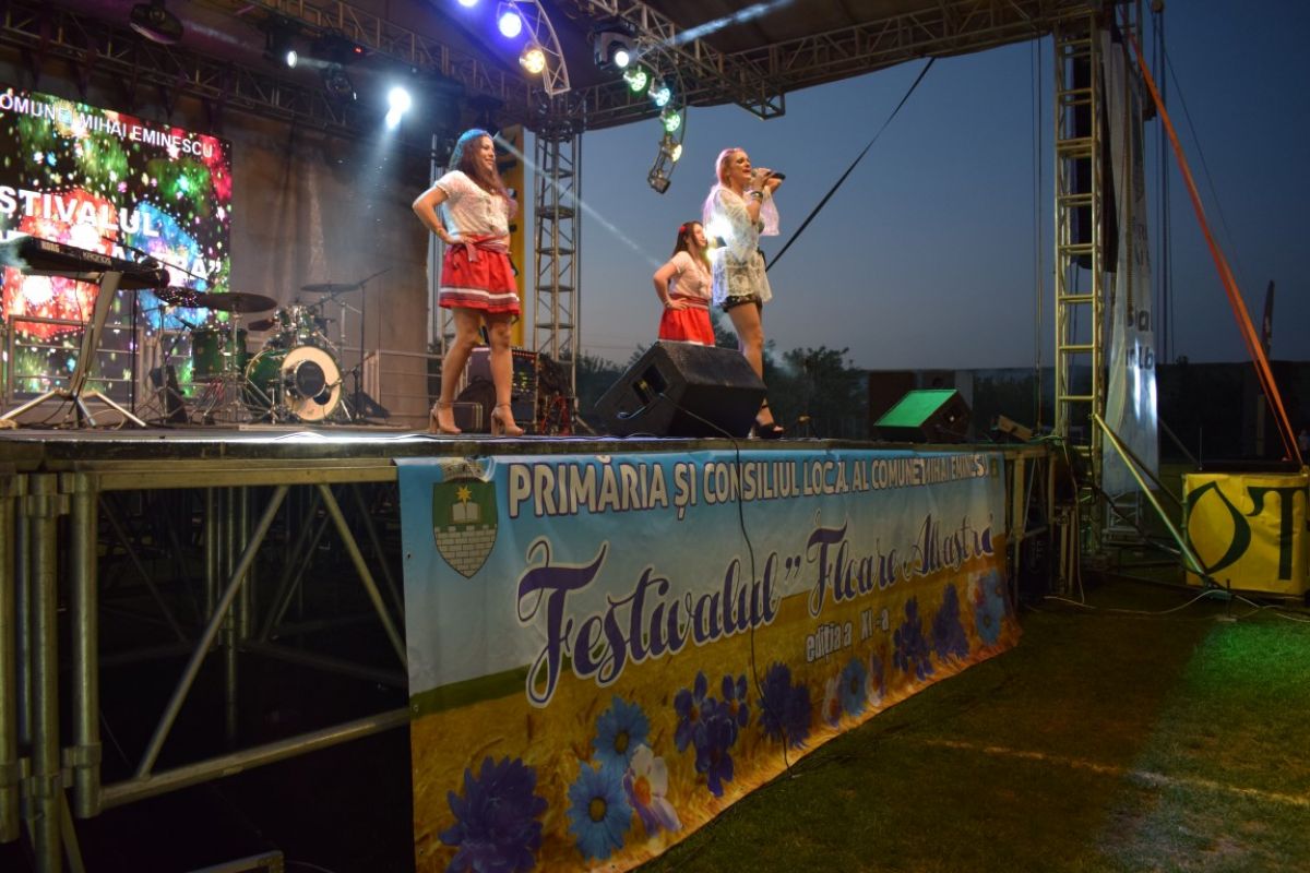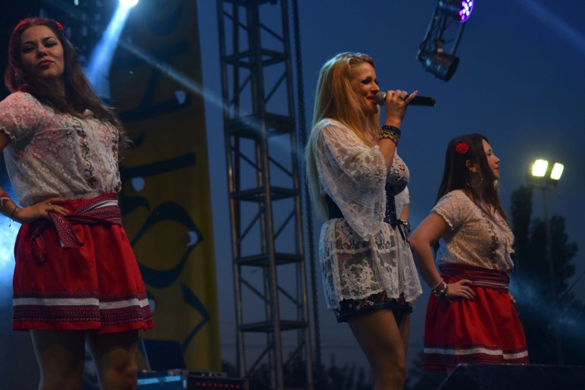 Aida Preda a ajuns la Ipotești, la Festivalul Floare Albastră, după ce a condus sute de kilometri din capitală. A venit cu două dansatoare care s-au aflat pe scenă pe tot parcursul recitalului ei, în două costumații diferite.