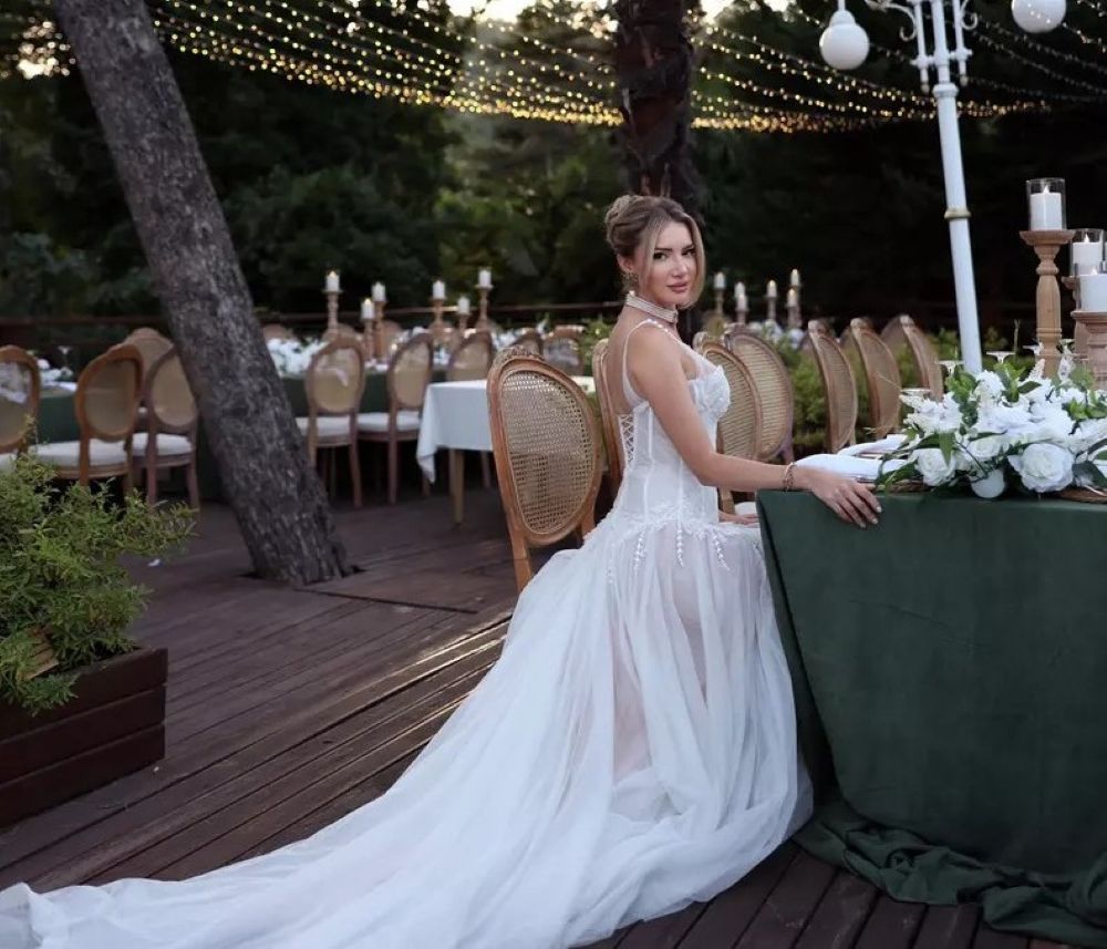 Prima nuntă, cu peste 600 de invitați, a fost marcată de tradiții turcești și românești, iar artista a purtat un caftan alb cu detalii aurii, inspirat din garderoba sultanelor.