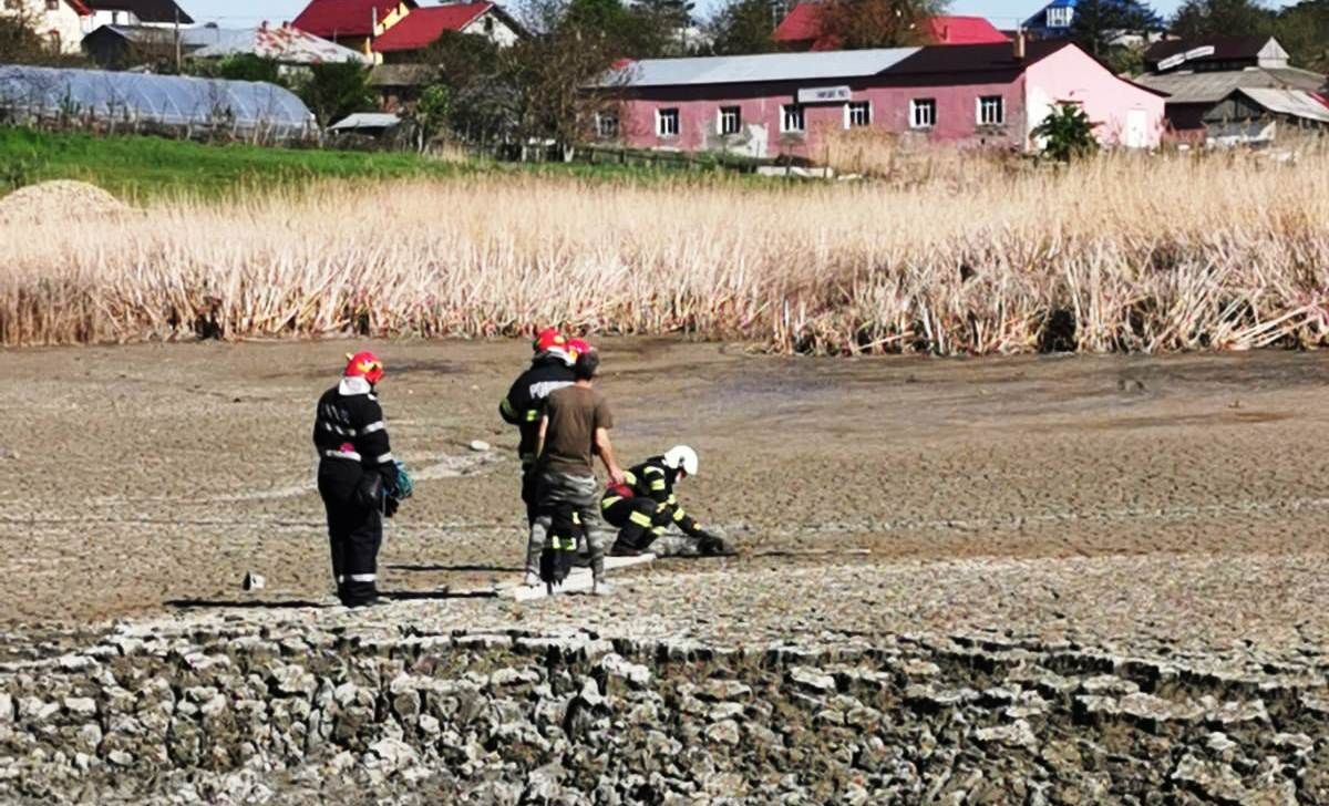 Ceea ce părea o operațiune de salvare simplă, s-a transformat într-o misiune riscantă deoarece stratul de mâl măsura peste doi metri și orice pas greșit putea pune în pericol viața pompierilor.