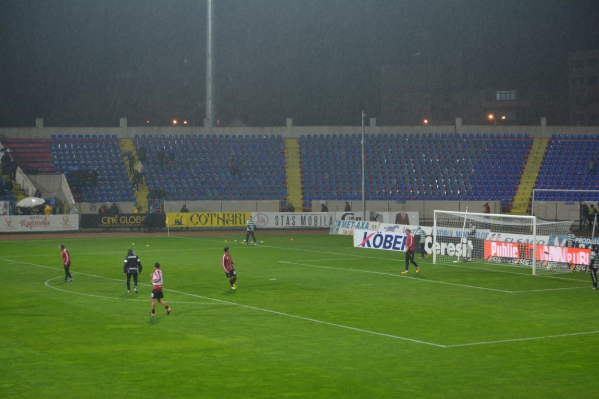 Suporterii alb-roşilor par însă mai preocupaţi de marea rivală din capitală, căreia i-au dedicat scandări care nu pot fi redate în întregime, precum „Cine ţine cu Steaua, să-i BIP BIP BIP familia”, „La spurcaţi, BIP BIPBIP la spurcaţi”.