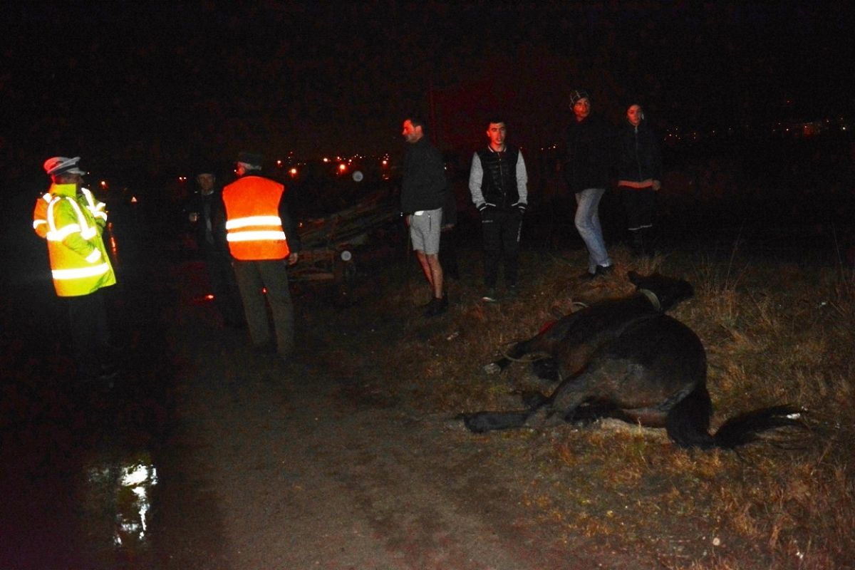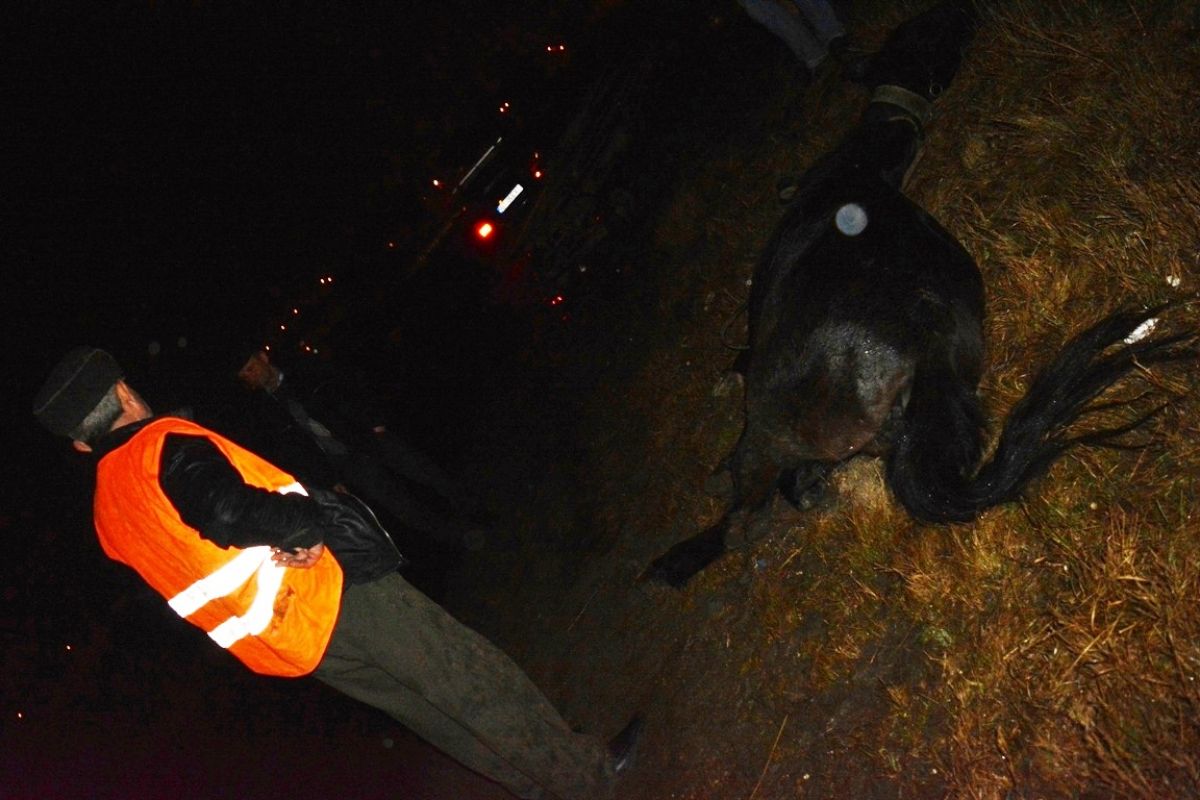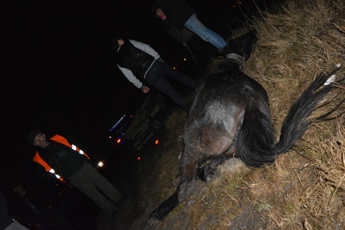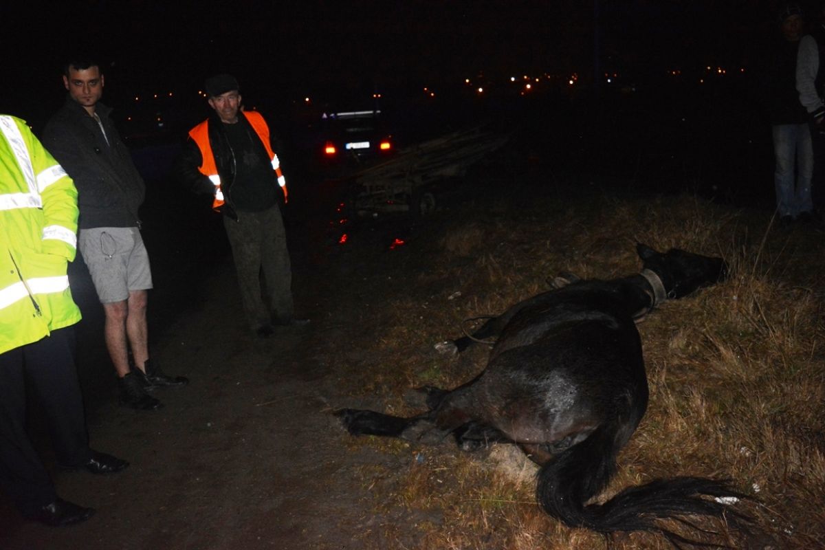 În urma impactului calul părea a fi mai mult mort decât viu, fiind rămas pe marginea drumului.