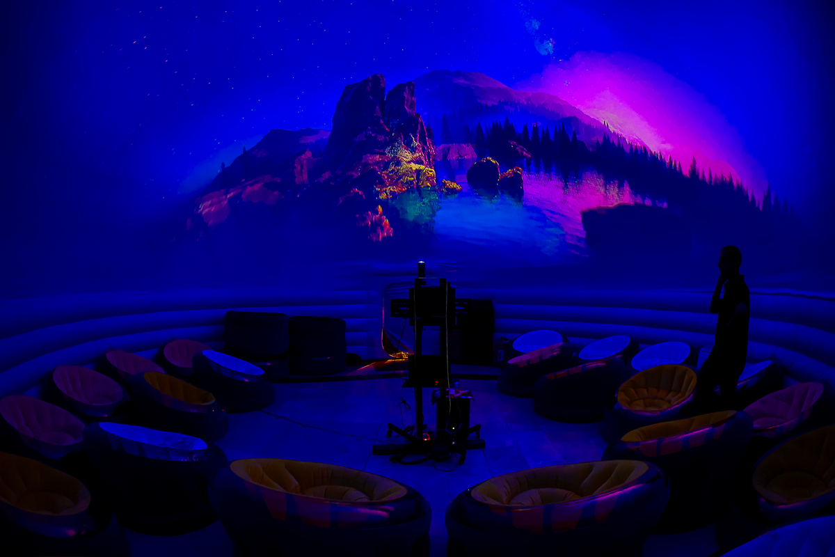 Cupola gonflabilă are un diametru de 8 metri și este dotată cu un proiector digital de planetariu, iar scaunele sunt special gândite astfel încât să ofere confort și o vizionare panoramică a întregului spectacol.