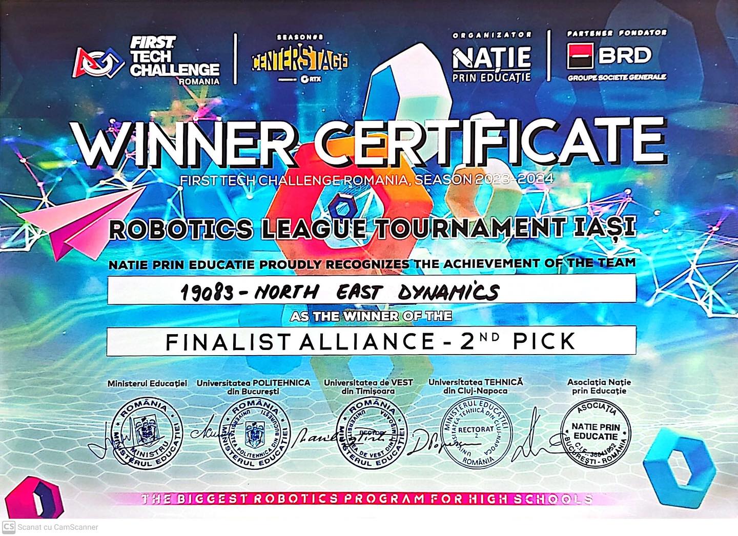 Printre echipele care au trăit la maximă intensitate cele trei zile ale competiției a fost și North East Dynamics a Liceului ”Regina Maria”. După câteva luni de muncă și revizuiri continue, robotul proiectat și programat de liceenii reginiști a funcționat perfect, aducând victorii în toate cele șase meciuri și o calificare la etapa națională a competiției, informează dorohoinews.ro.