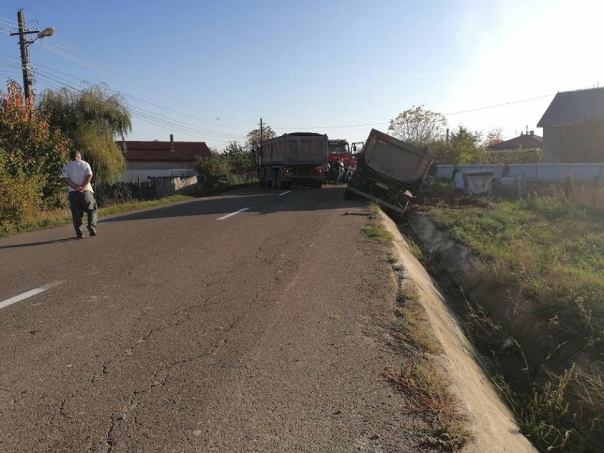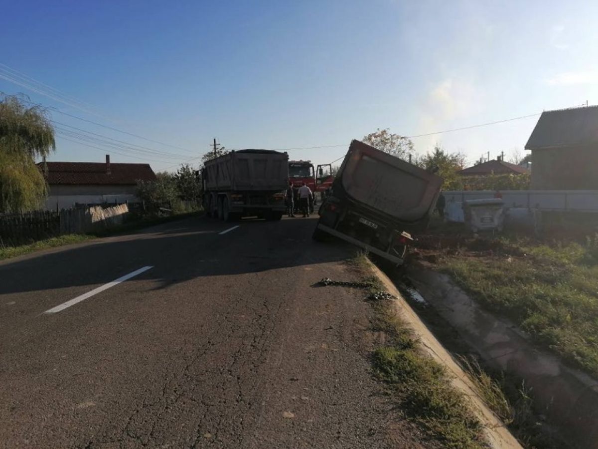 Din fericire, conducătorul auto a scăpat teafăr după ce camionul pe care îl conducea s-a răsturnat în afara carosabilului, mai exact în șanțul de pe marginea drumului.