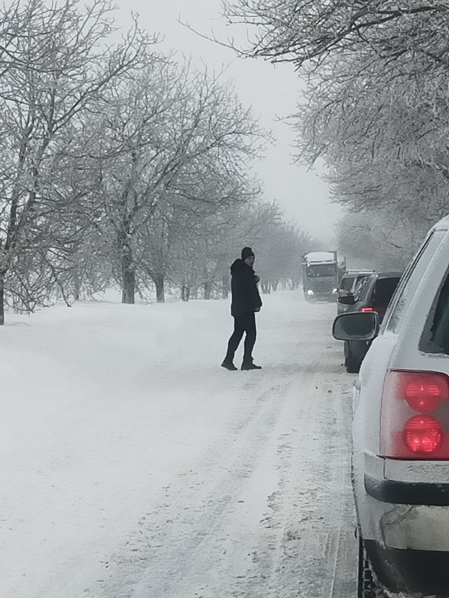 Zeci de minute, traficul a fost blocat. Coloana de mașini se întindea pe kilometri întregi, fiind blocate laolaltă mașini mici și camioane.