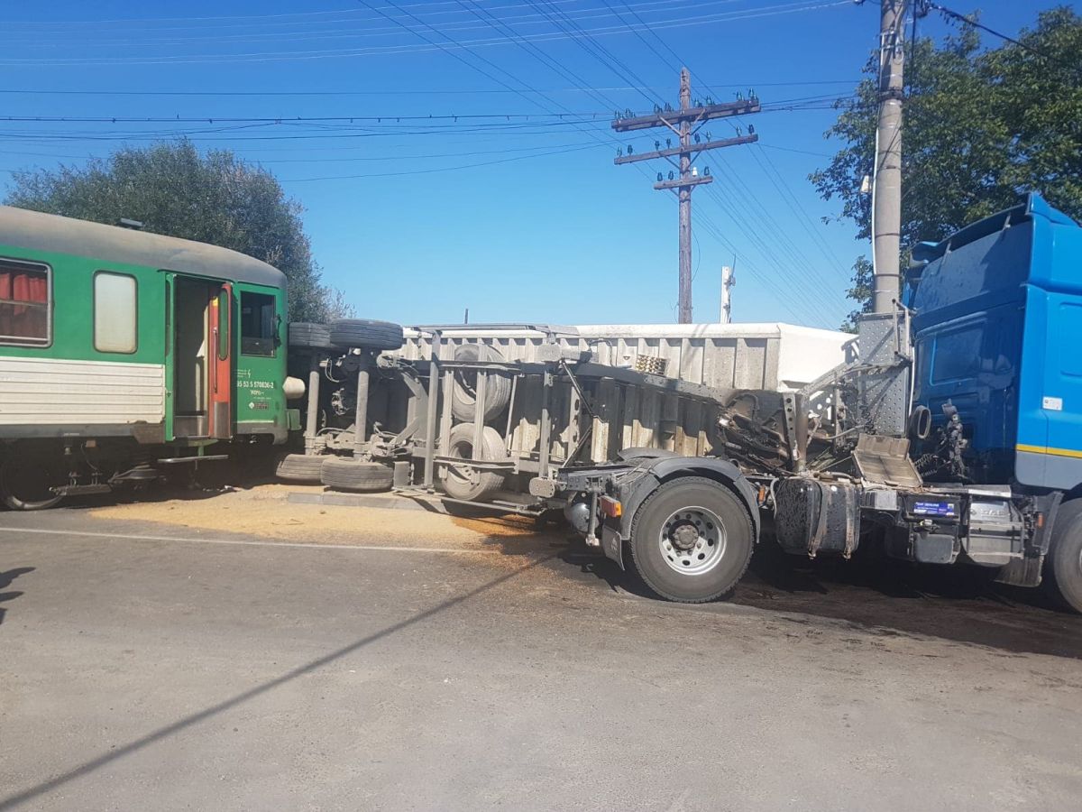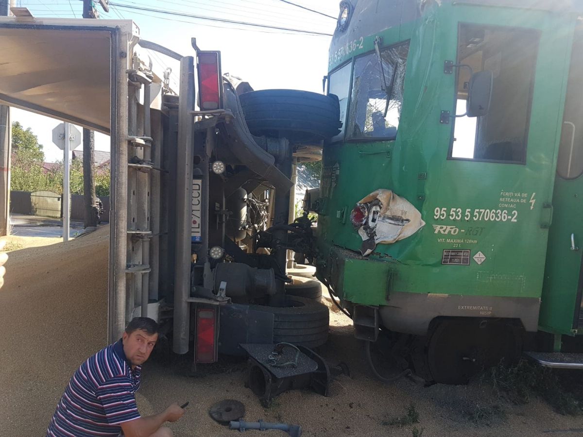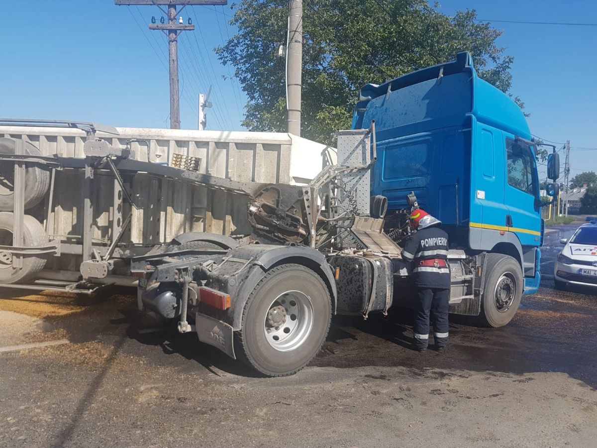 Acesta a lovit un camion care era încărcat cu nisip. În urma impactului camionul s-a răsturnat, fiind lovit în partea din spate, la remorcă.