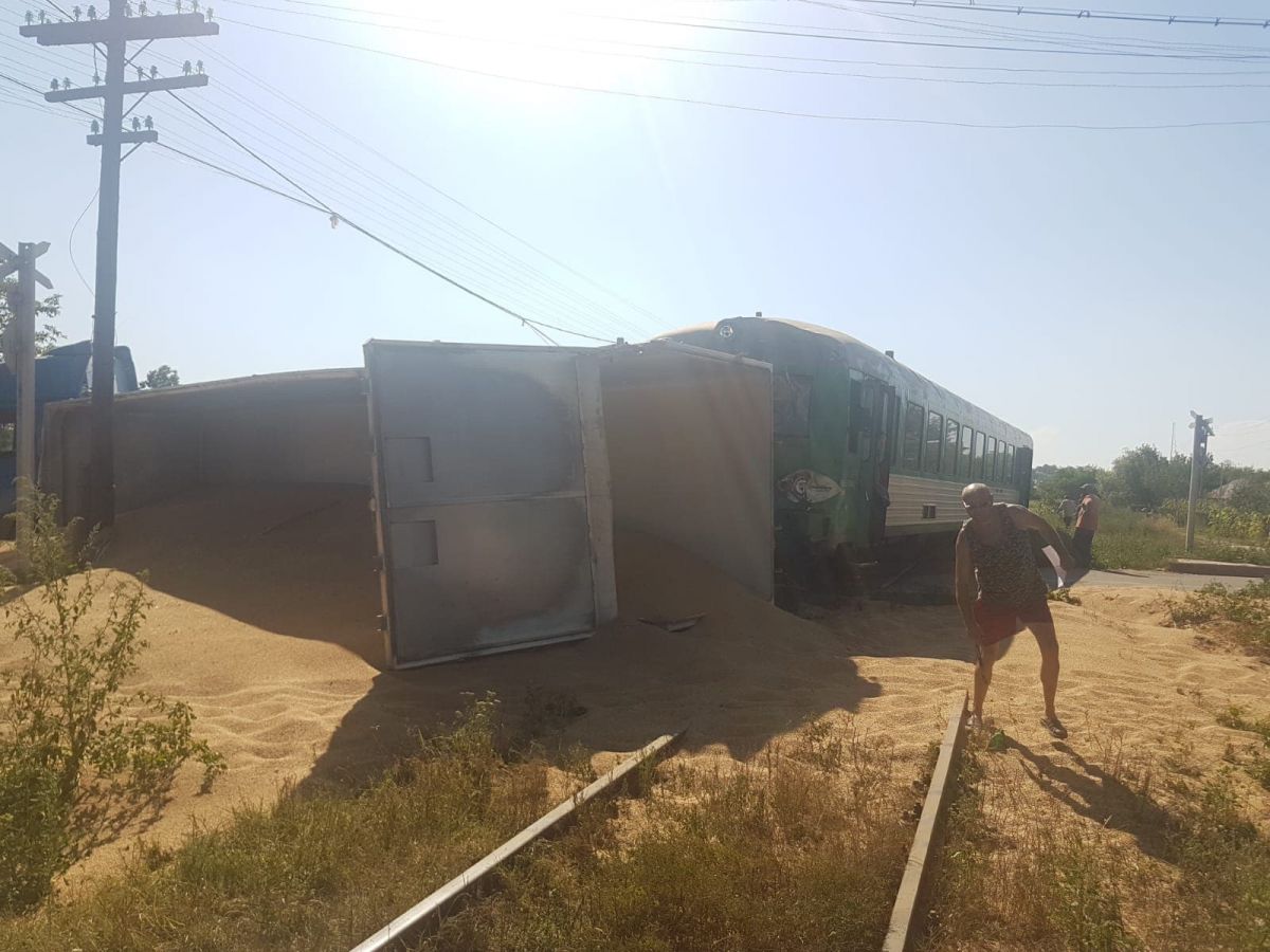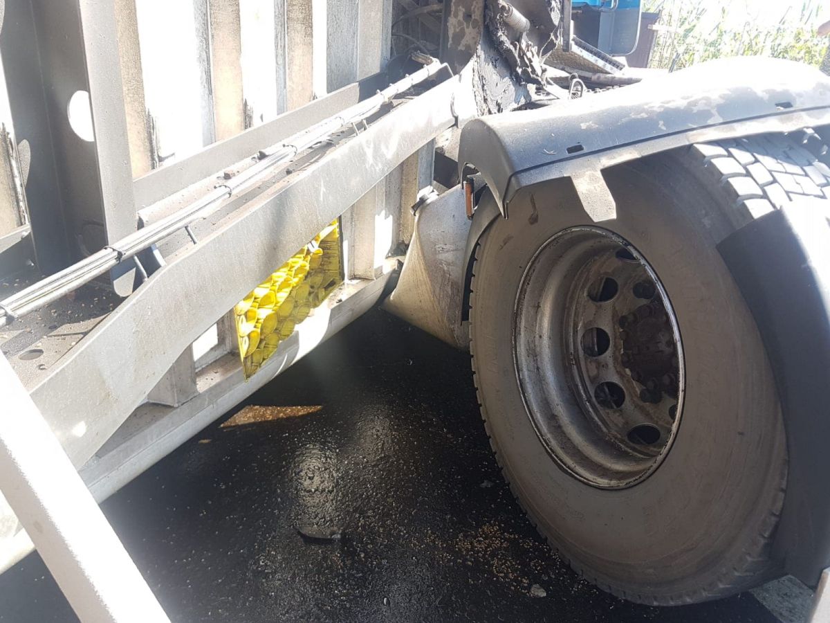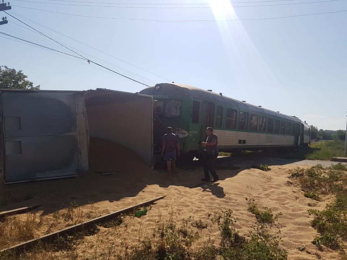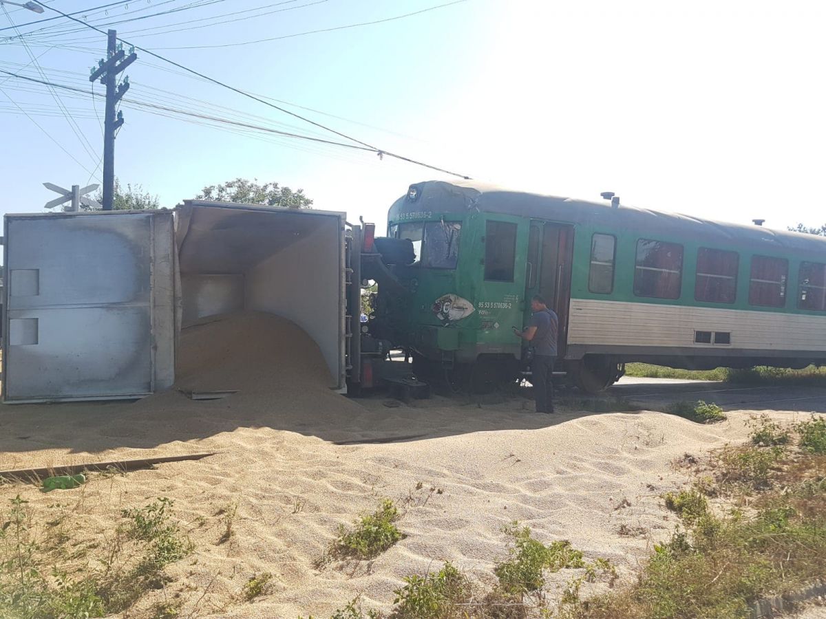 Acesta a lovit un camion care era încărcat cu nisip. În urma impactului camionul s-a răsturnat, fiind lovit în partea din spate, la remorcă.