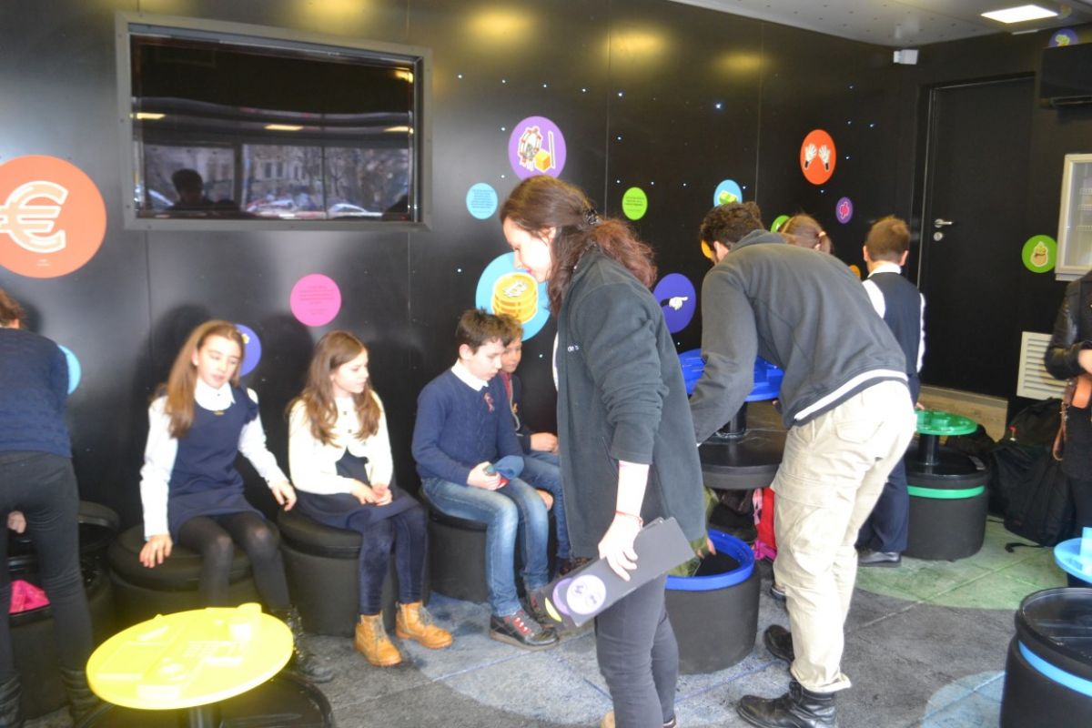 Timp de 90 de minute, grupuri de câte 15 elevi sunt ghidați de traineri specializați, într-o călătorie care are drept scop explicarea pe înțelesul celor mici noțiuni financiare de bază. De altfel, astăzi au venit elevi de la Școala nr 11 pentru a participa la aceste ateliere.