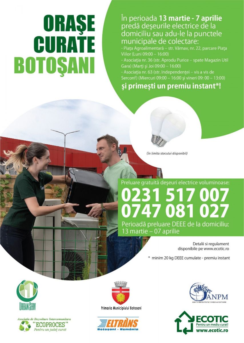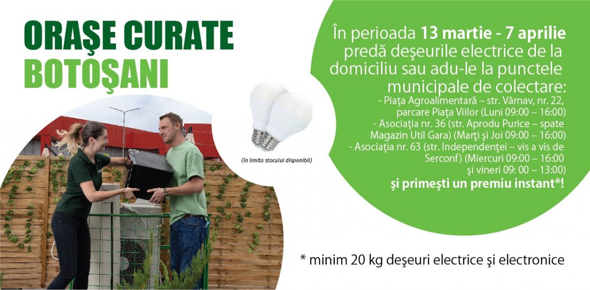 În perioada 13 martie – 7 aprilie, locuitorii din Botoșani sunt încurajați să se implice activ în protecția mediului prin colectarea separată a deșeurilor electrice și electronice.