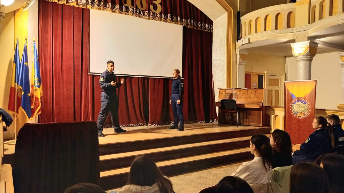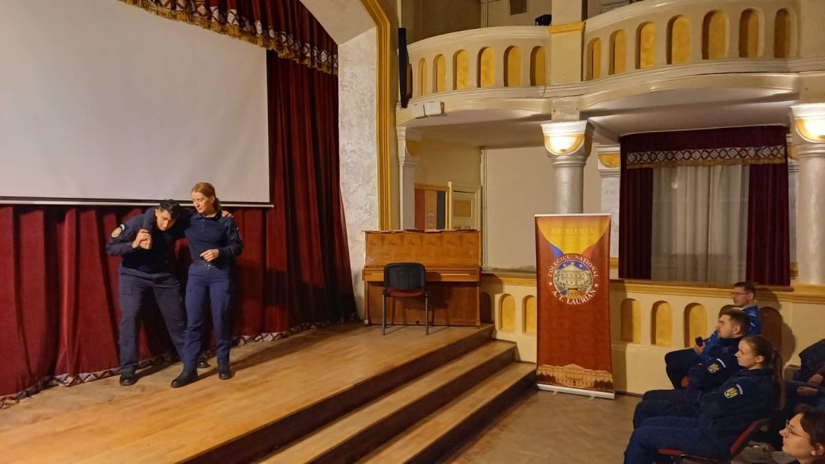 Joi seară, în aula Colegiului Național ”A.T. Laurian", plutonierul Octavian Grigoriu, din Inspectoratul de Jandarmi Județean Botoșani, le-a dat tinerilor membri ai Asociației Interact sfaturi pentru prevenirea implicării în altercații, după care le-a prezentat câteva procedee de autoapărare, care le pot fi de un real folos în situații neplăcute.