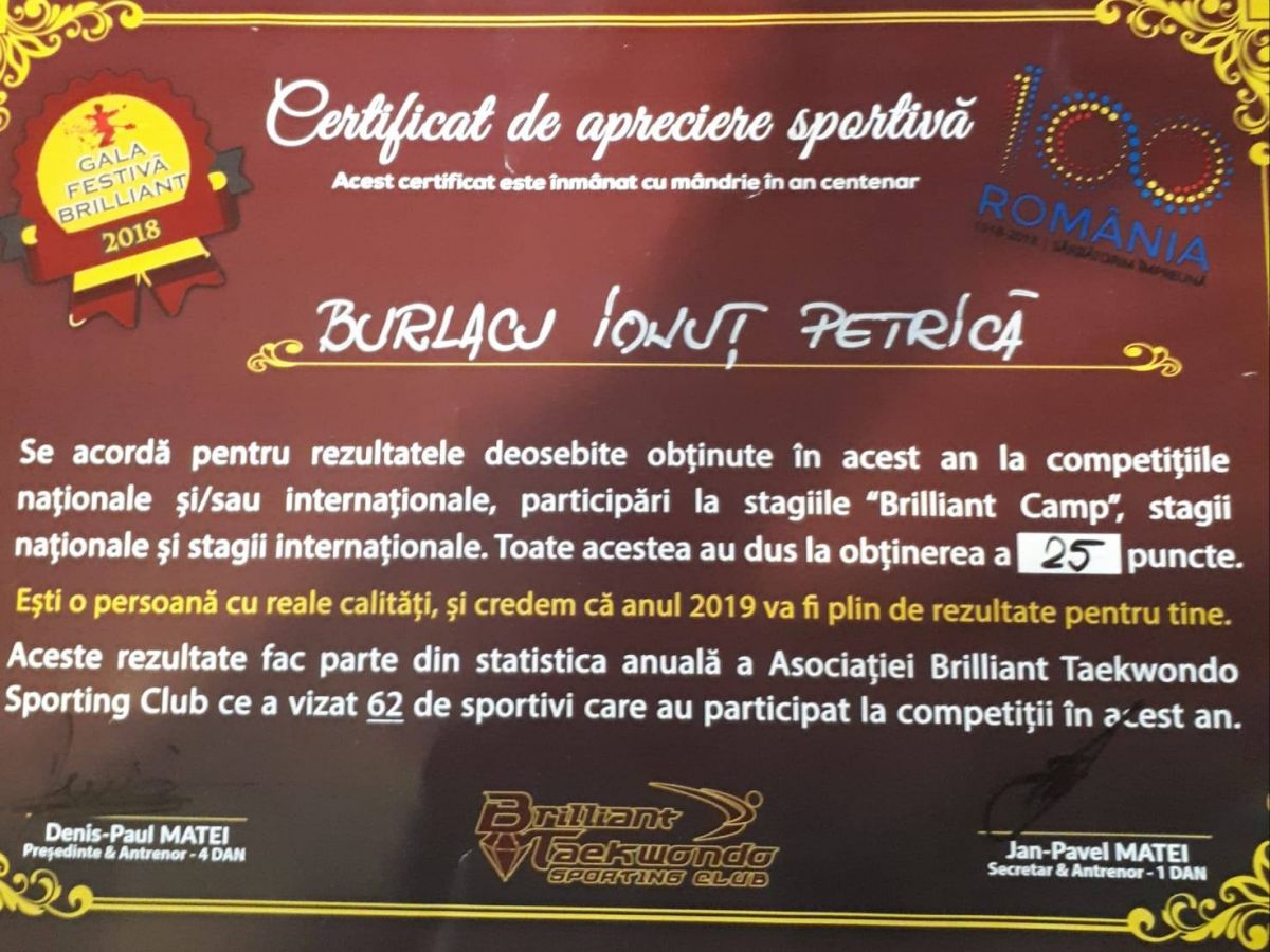 Ambii sportivi au participat la Dubriţa - Bulgaria, la Internațional Christmas Taekwondo Tournament. În cadrul acestui concurs, băieții au ajuns până în finală purtând o luptă foarte strânsă. În urma prestației, Mihai a câștigat locul I, iar Florin locul II.