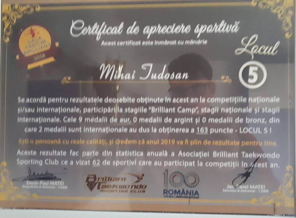 Mihai Tudosan a aflat de acest sport din întâmplare, acum doi ani, iar la început nu a fost deloc încântat. Mai târziu, a descoperit cât de mult îi place, iar acum visează să devină antrenor. Mihai s-a întors de la competiții cu medalii de aur, de argint, dar și bronz, iar în aprilie anul trecut a devenit dublu Campion Național Taekwondo WT la categoria B.