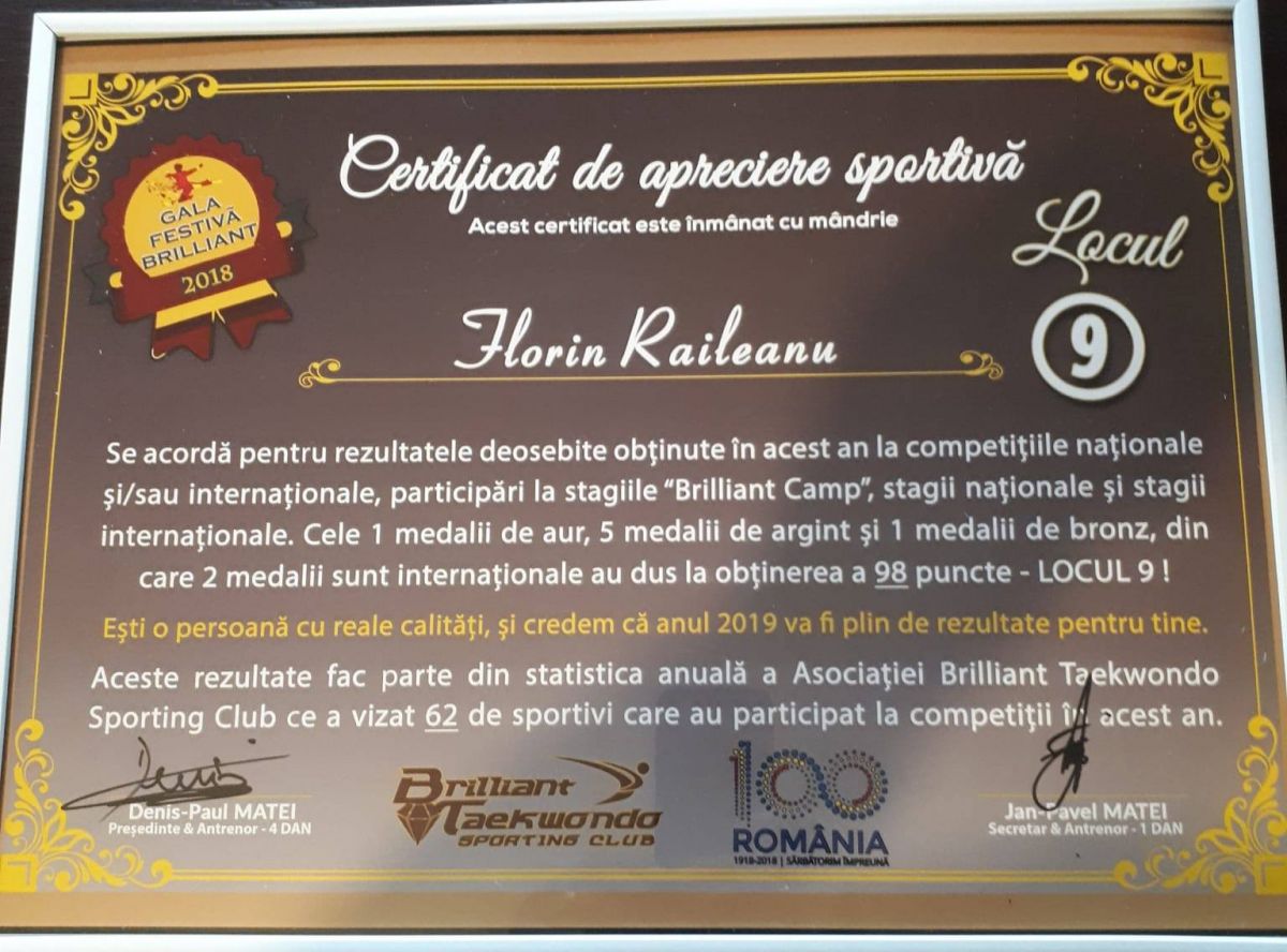 Florin Răileanu este un alt tânăr care s-a făcut remarcat prin rezultatele obținute la acest sport. În anul 2017 a obținut o medalie de aur, două medalii de argint, dar și patru de bronz la competiţii naţionale. Pentru el, marele succes a venit cu vestea că a fost remarcat de Federația Română de Taekwoando WT și astfel a devenit arbitru.