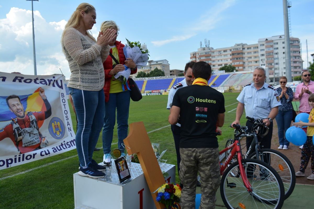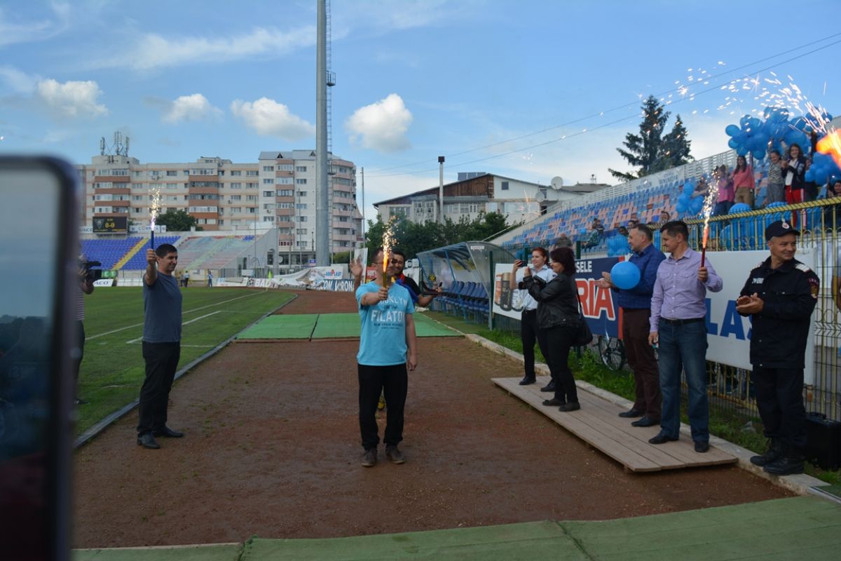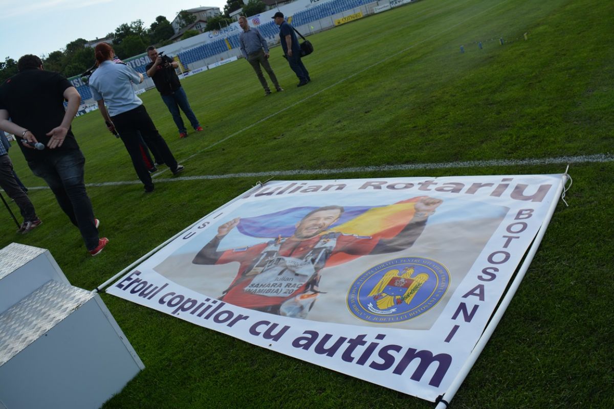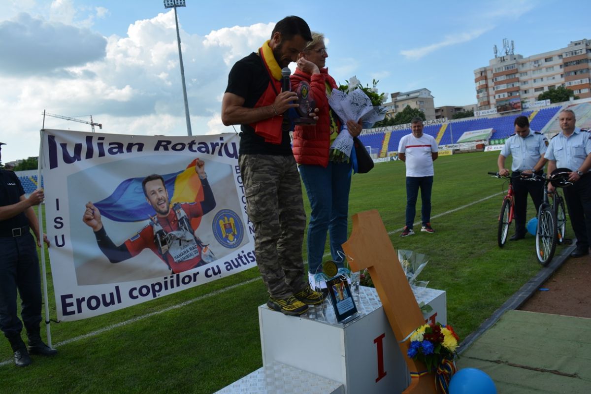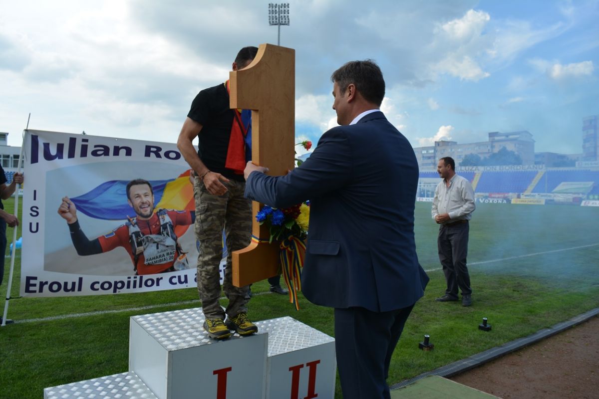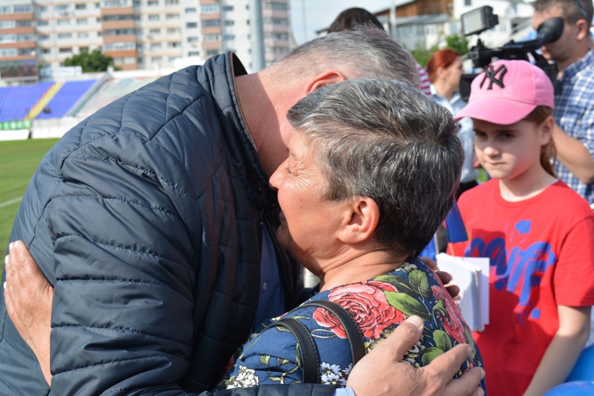 Iulian Rotariu a venit pe pista de atletism, iar pe gazon și în tribune a fost așteptat de oficialități ale județului și orașului, de șefii și colegii de la ISU Botoșani, de părinții săi, de soția Claudia și cei doi copii, Maria și David.