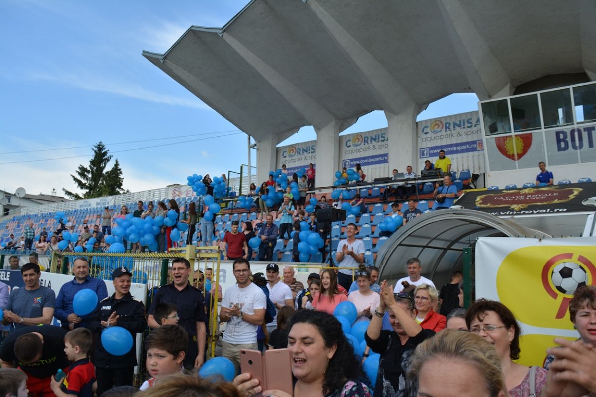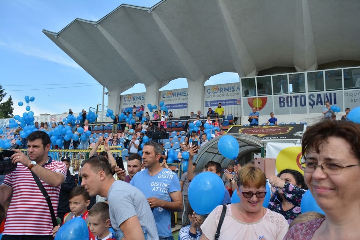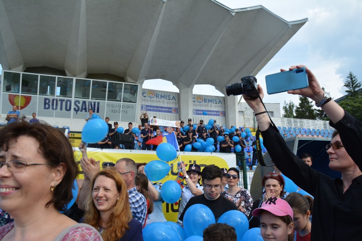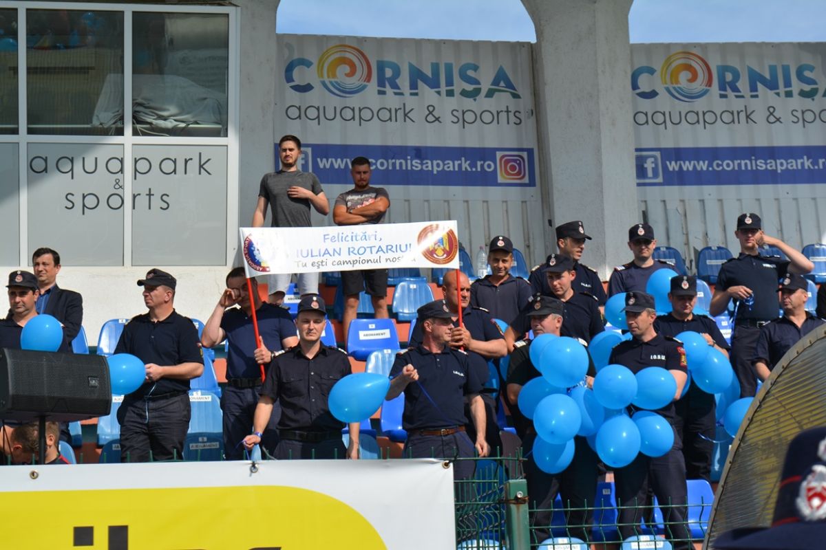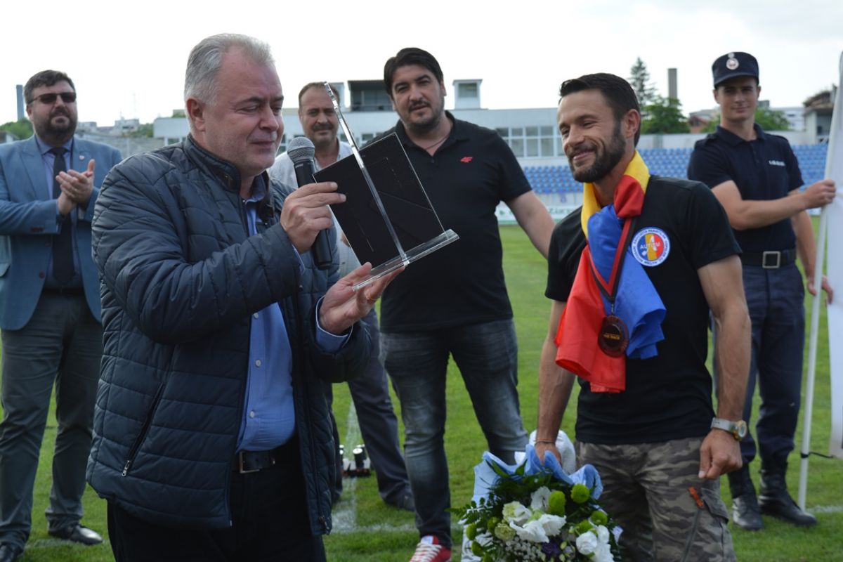 Iulian Rotariu a venit pe pista de atletism, iar pe gazon și în tribune a fost așteptat de oficialități ale județului și orașului, de șefii și colegii de la ISU Botoșani, de părinții săi, de soția Claudia și cei doi copii, Maria și David.