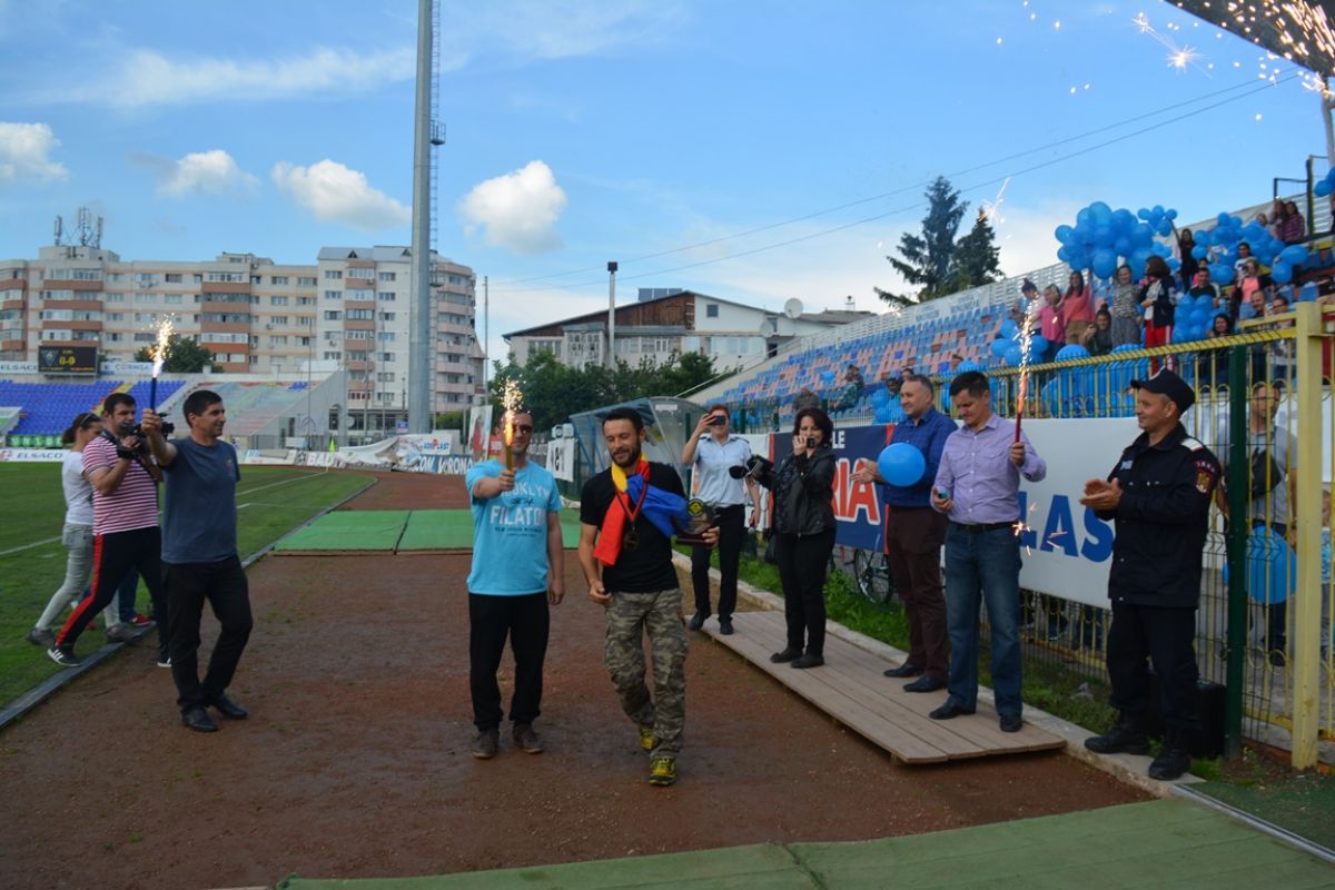 Pompierul maratonist de la Inspectoratul pentru Situații de Urgență (ISU) Botoșani a avut parte miercuri după-amiază de o primire de gală pe Stadionul Municipal.