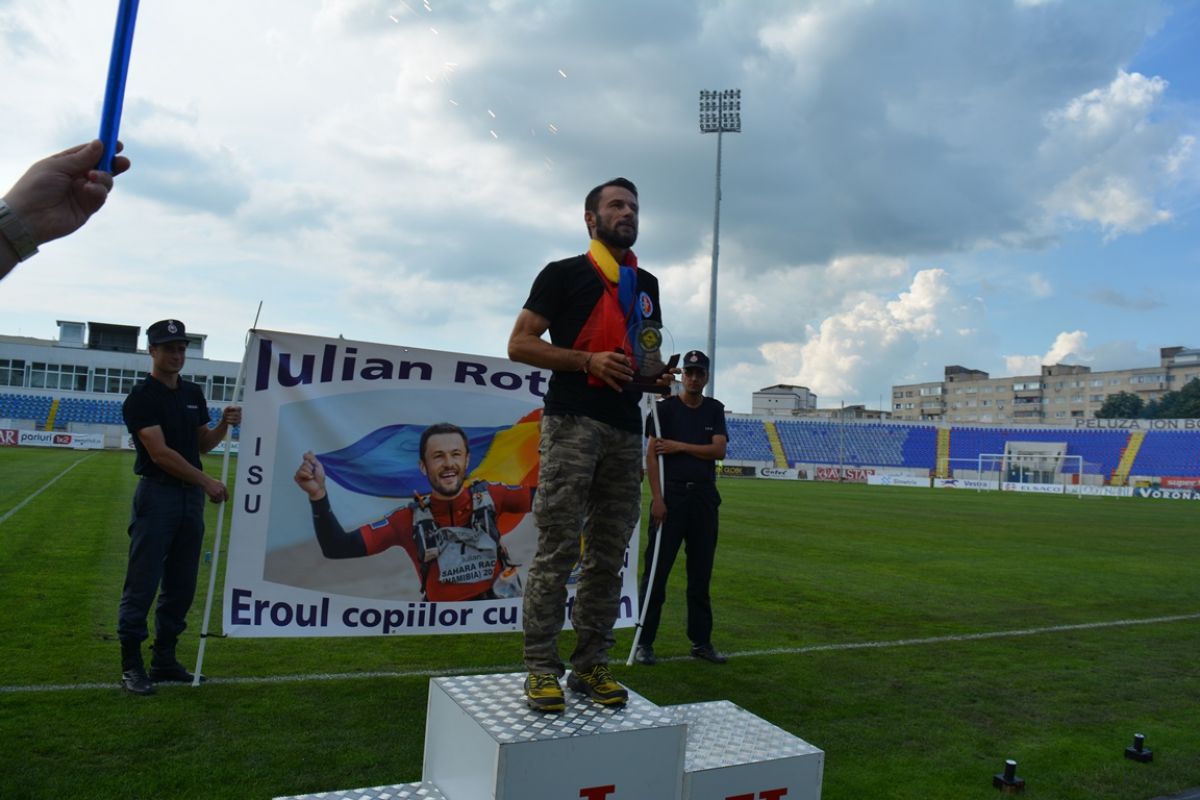 De altfel, la ceremonie Iulian a purtat un tricou cu sigla APCA, știut fiind faptul că scopul său declarat prin participarea la competițiile de alergare extremă de pe mapamond este acela de a susține cauza acestor copii.