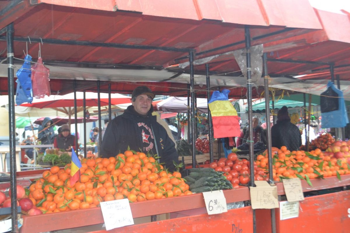 Este cazul unui comerciant din piață care pe lângă citrice sau legume și-a pus pe tarabă și tricolorul semn că el în ciuda muncii pe care o depune zi de zi, nu a uitat să își cinstească țara.