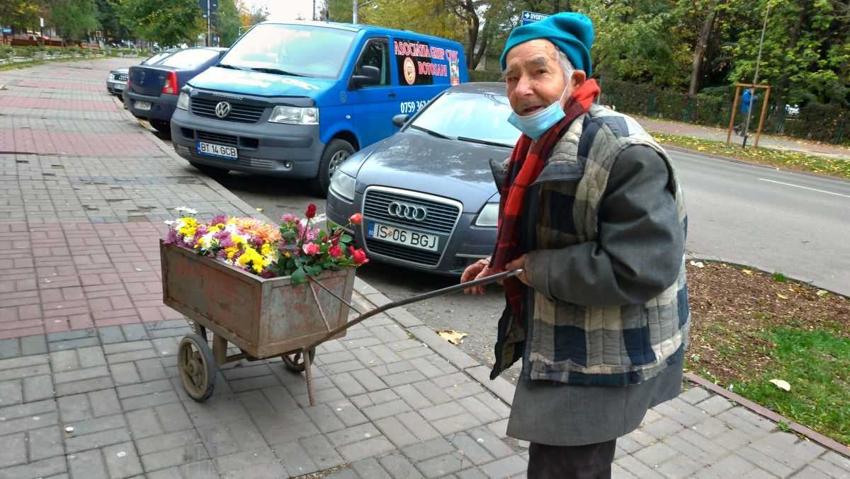 Imaginea unui bătrân care vinde flori pe străzile din Botoșani l-a impresionat pe unul dintre cei mai mari regizori și actori din România.