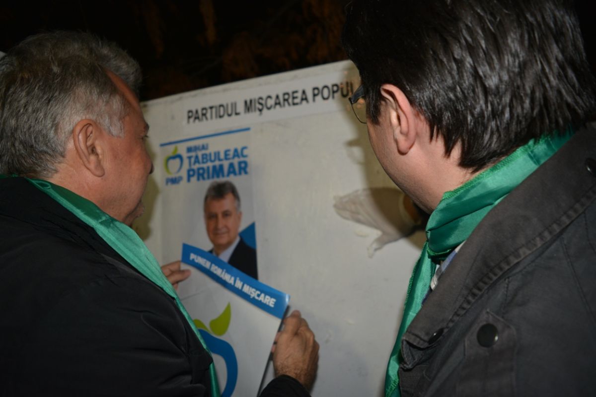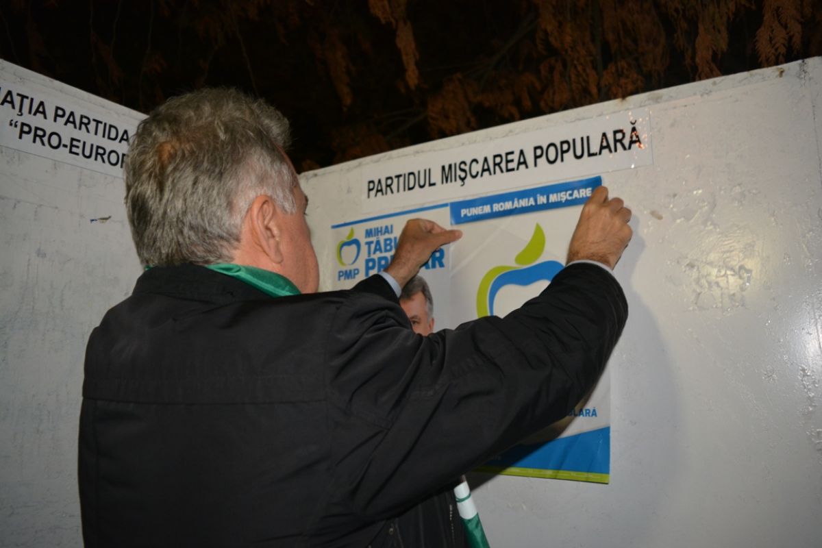 Alături de social-democraţi, progresişti şi liberali-democraţi, la miezul nopţii, în Parcul Rapsodia au sosit şi popularii. Avându-l în frunte pe Mihai Ţâbuleac, PMP-iştii au lipit primele afişe pe panourile amenajate vis-a-vis de hotel.