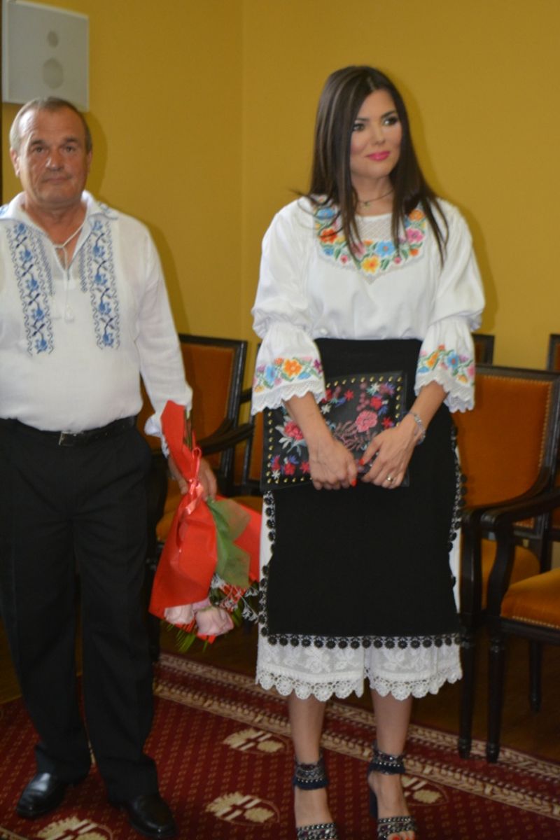 Cei doi au respectat linia vestimentară a evenimentului, îmbrăcându-se în straie populare.