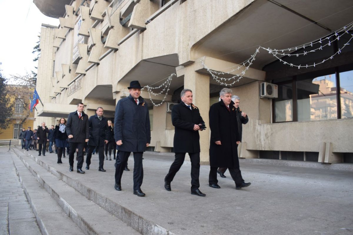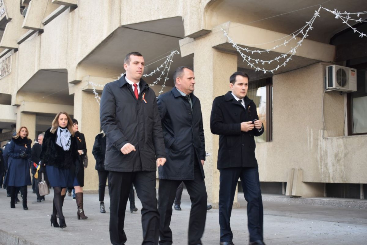 Ulterior s-au contopit într-un semicerc lângă plăcuța comemorativă de pe Palatul Administrativ, neobservată de cei mulți dar cu mare însemnătate pentru noi.