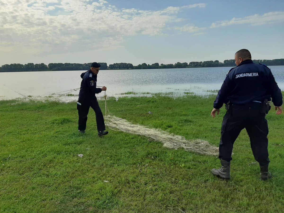 Pentru scoaterea plaselor de pescuit, jandarmii au solicitat sprijinul polițiștilor de frontieră, care au intervenit cu șalupa din dotare pe cursul apei.