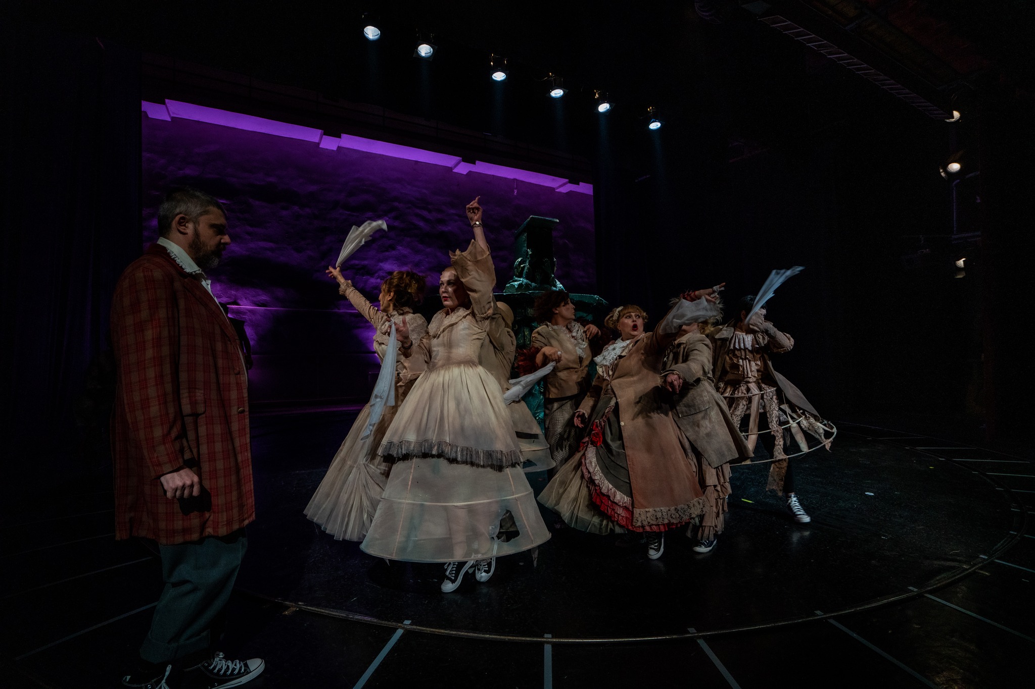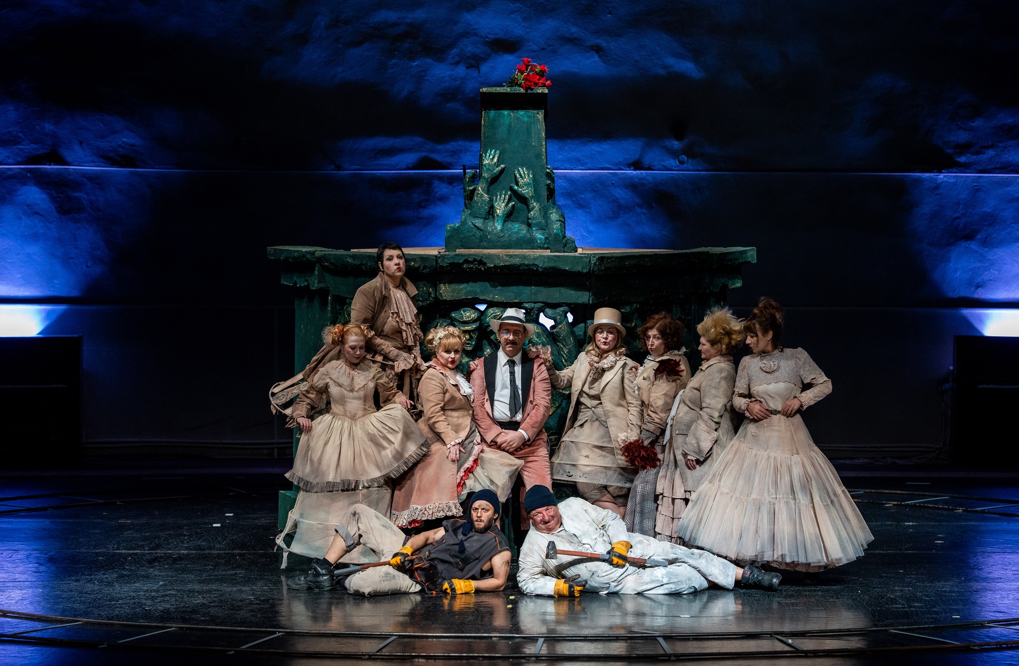 Din distribuția spectacolului fac parte actorii: Dana Bucătaru, Lorena-Petronela Chiribuță, Sorin Ciofu, Volin Costin, Alexandru Dobynciuc, Gheorghe Frunză, Cristina Gheorghe, Bogdan Horga, Silvia Luca, Lenuș Moraru, Crenola Muncaciu, Gina Patrașcu-Zamfirache, Valentin Popa.