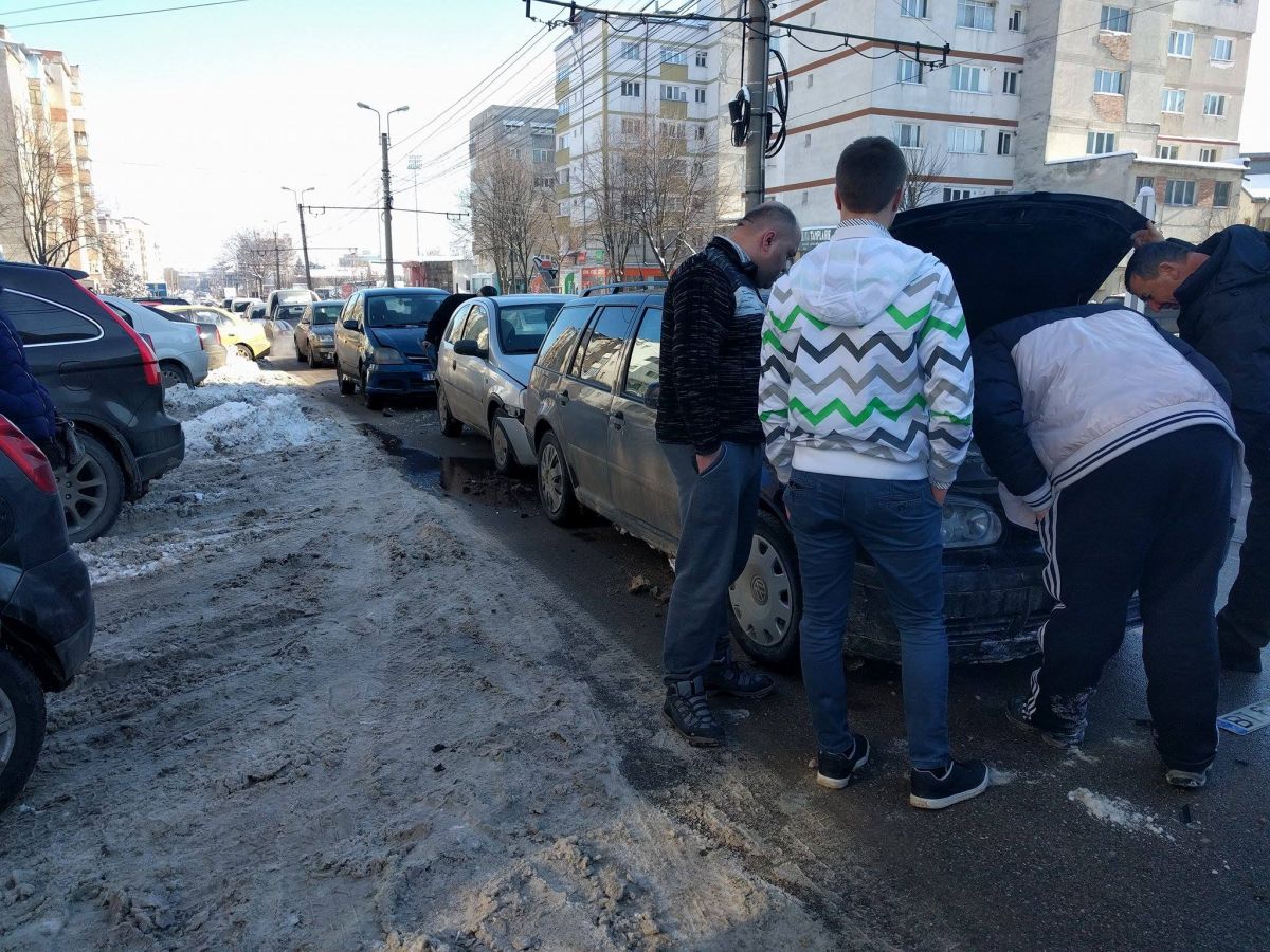 Patru mașini au fost avariate din cauza unui șofer neatent. Accidentul s-a petrecut în apropiere de sediul E.ON pe direcția de mers Stadionul Municipal – Gară.