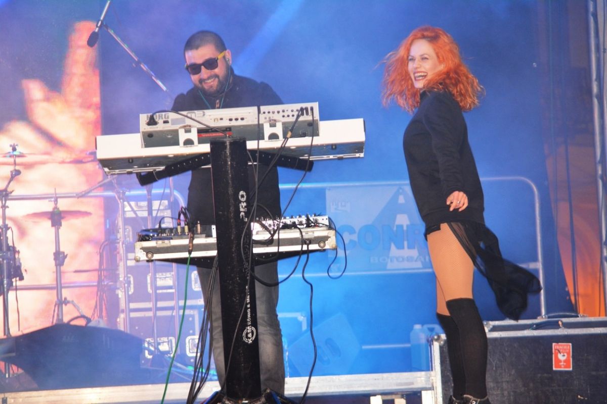 Cântăreața, care spre surpriza spectatorilor a apărut brunetă cu părul mult mai scurt decât și-a obișnuit fanii, a îngenuncheat de mai multe ori pe scenă, s-a ținut de picioarele chitaristului și a oferit inclusiv câteva interpretări în stil propriu ale unor melodii populare, prima fiind ”Constantine, Constantine”. Ea a mărturisit că a fost alarmată de prognoza meteo și că se aștepta să găsească zăpadă de un metru la Botoșani: