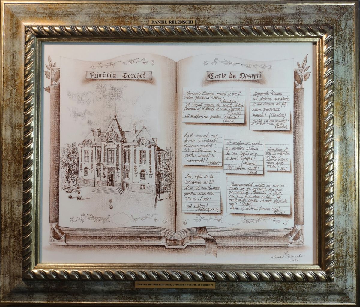 Lucrarea, denumită "Cartea de vizită a Primăriei Dorohoi", are dimensiunile de 40/50 cm.