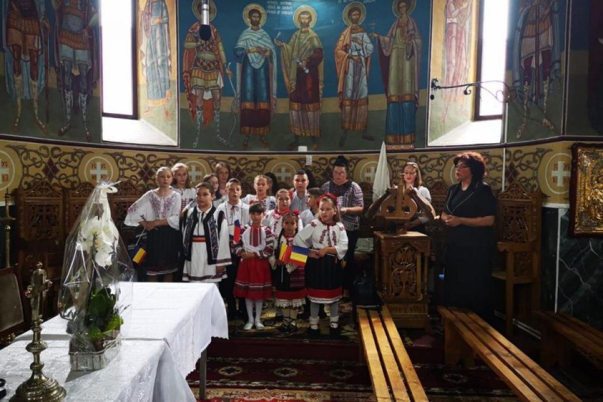 La sfârșitul alocuțiunilor, un grup de copii conduși de prof. Maria Simion au prezentat un scurt program artistic de poezie și cântări patriotice.