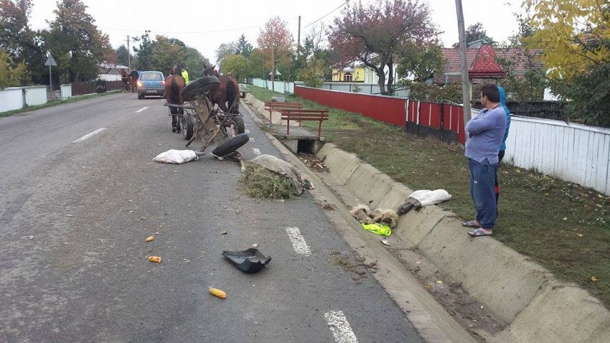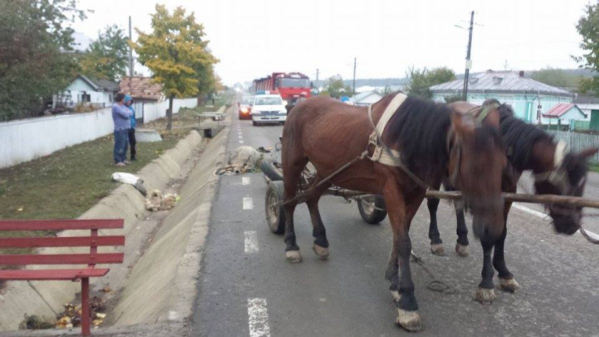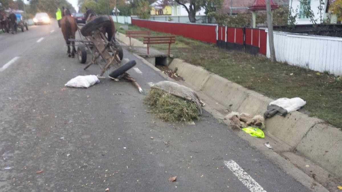 Deși ar putea părea ciudat, ambele vehicule se deplasau pe aceeași direcție de mers, numai că șoferul, Marian Bostan din Balta Arsă – Corni, susține că la ora respectivă încă era noaptea, iar căruța nu era semnalizată. Nu ar fi văzut-o și a lovit-o frontal. În urma impactului au fost răniți Mihăiță Jugariu, născut în 1974 și fiul acestuia, Iulian, născut în 1997, ambii fiind trasportați la spital. Ceea ce a rămas la fața locului doar mai seamănă cu o căruță, atelajul fiind dezintegrat. (G.E.)