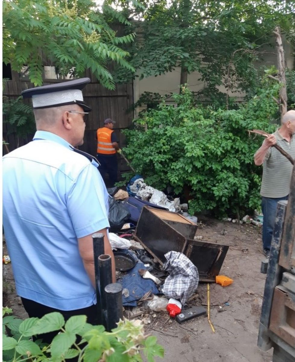 Astfel, polițiștii locali din cadrul Serviciului Protecția Mediului, au participat la acțiuni de igienizare şi ridicare a deșeurilor, adunate şi depozitate necorespunzător în curtea locuinței numitului V.T., din Calea Națională nr. 141.