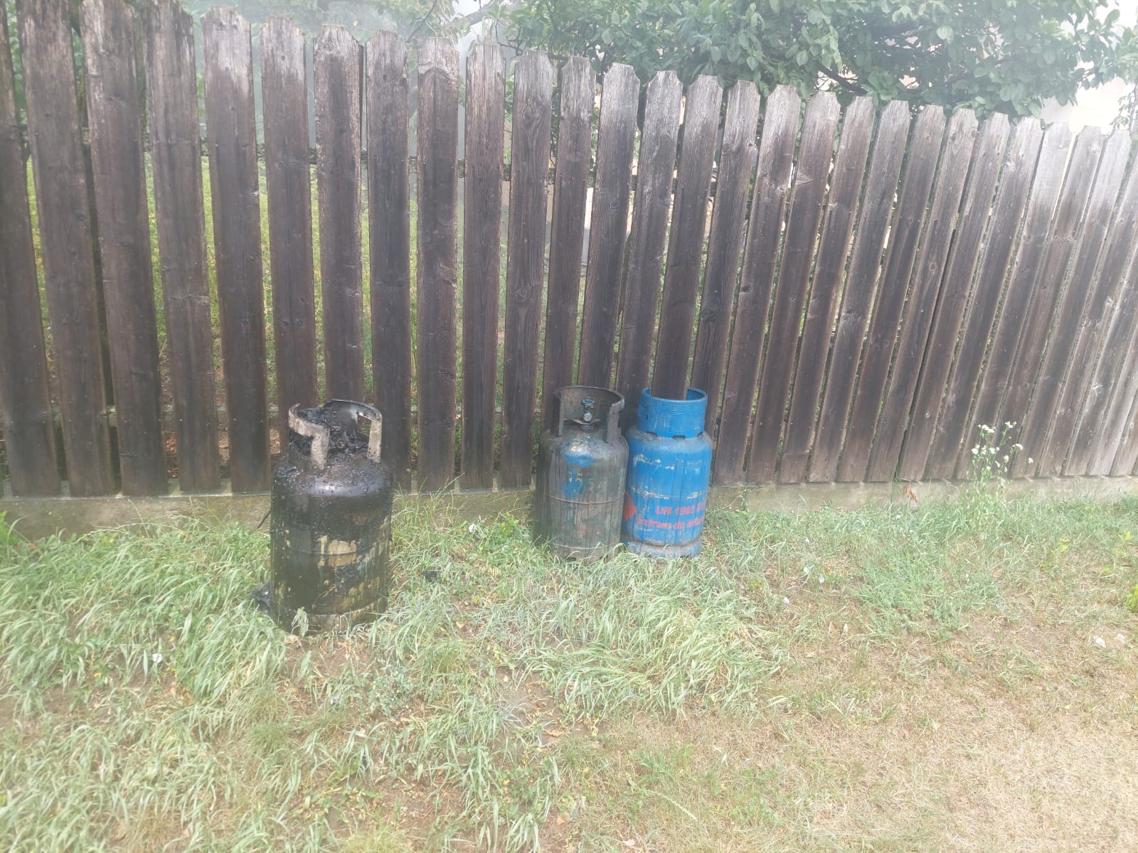 Aceștia au constatat faptul că ardeau bunurile din toate cele cinci camere și au acționat rapid astfel încât flăcările să nu se extindă la acoperișul casei, dar și la construcțiile din gospodăria alăturată. Pompierii au înlăturat pericolul de explozie, din interior fiind scoase trei butelii.