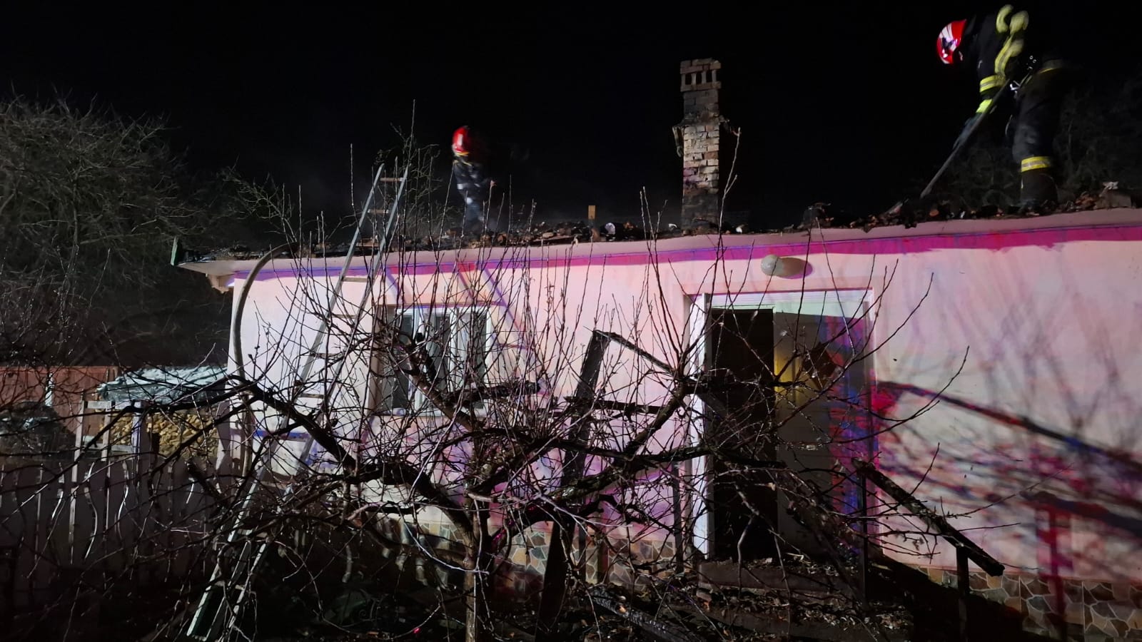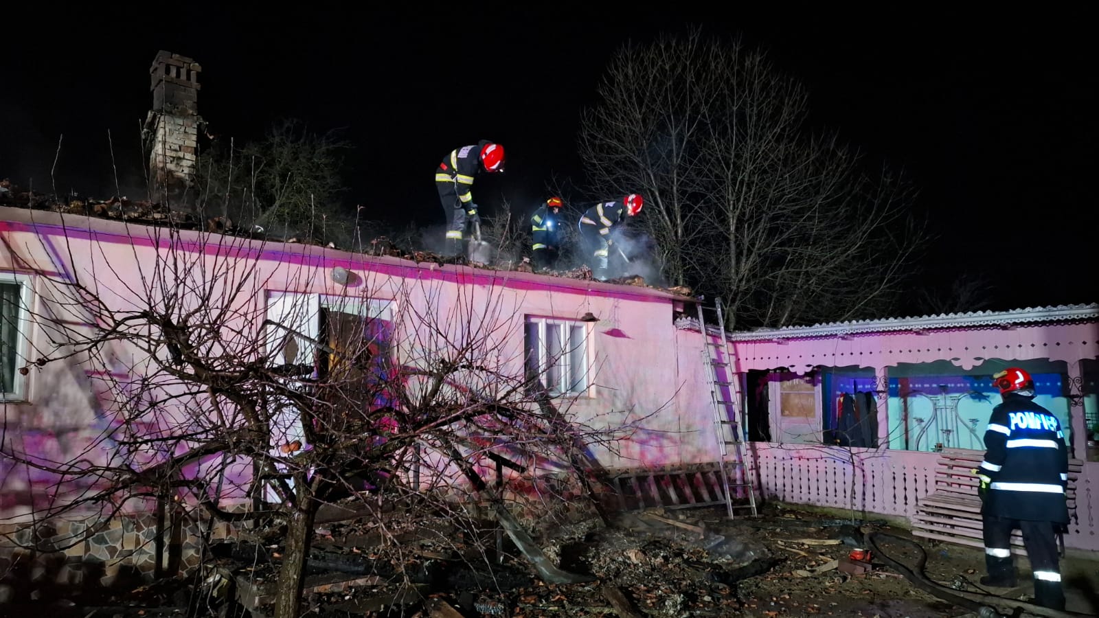 A ars acoperișul pe o suprafață de aproximativ 50 mp. Au fost salvate lucrurile aflate în interiorul casei.