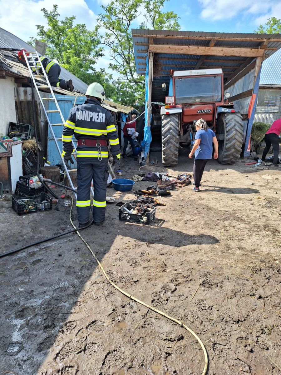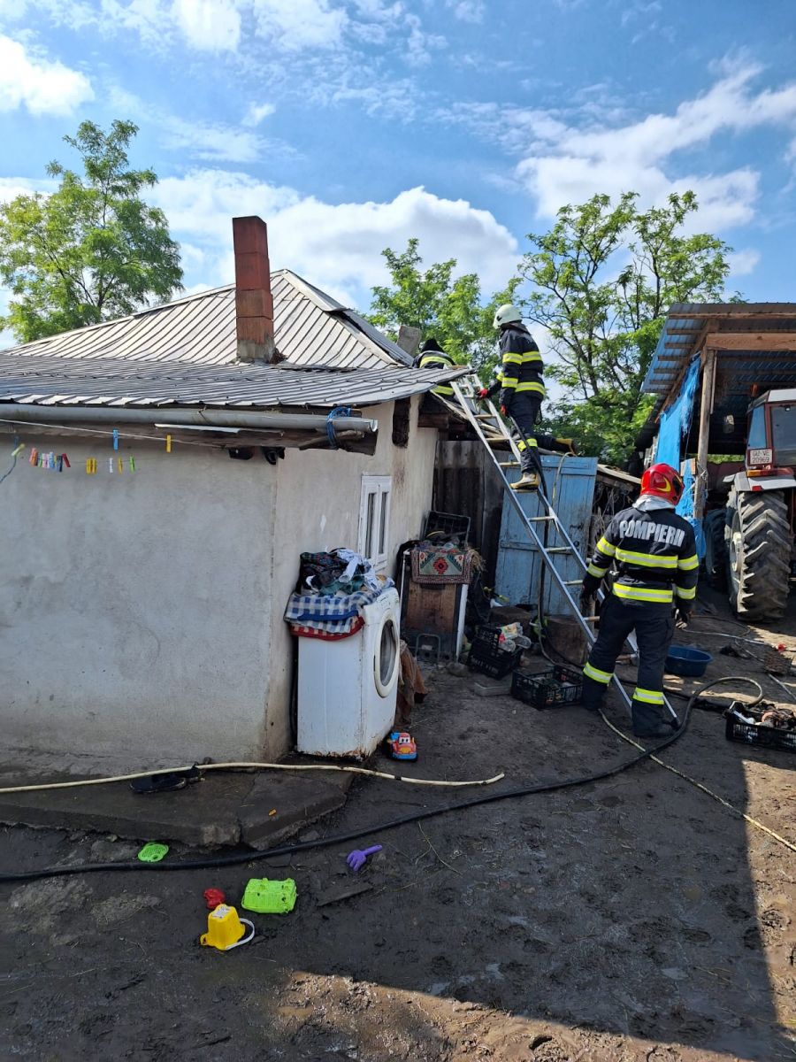 Aceștia au constatat faptul că ardeau mai multe bunuri depozitate în podul casei, dar și o parte din acoperiș, existând pericolul de propagare a flăcărilor la întreaga clădire.