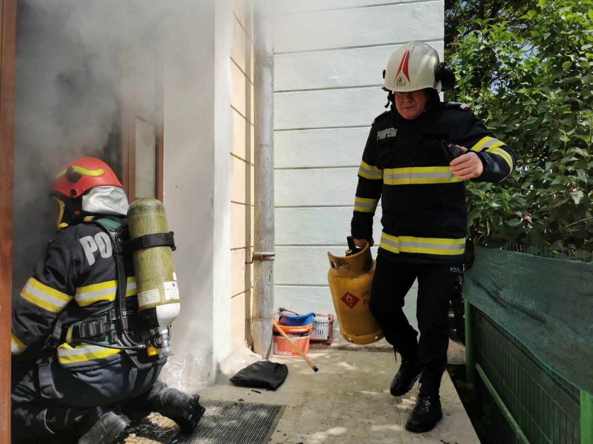 Preventiv, au fost evacuate două persoane care locuiesc într-o altă casă, lipită de cea care a fost afectată de flăcări. Incendiul a fost stins în limitele găsite. Pompierii au eliminat riscul de explozie, din interior fiind scoasă o butelie.