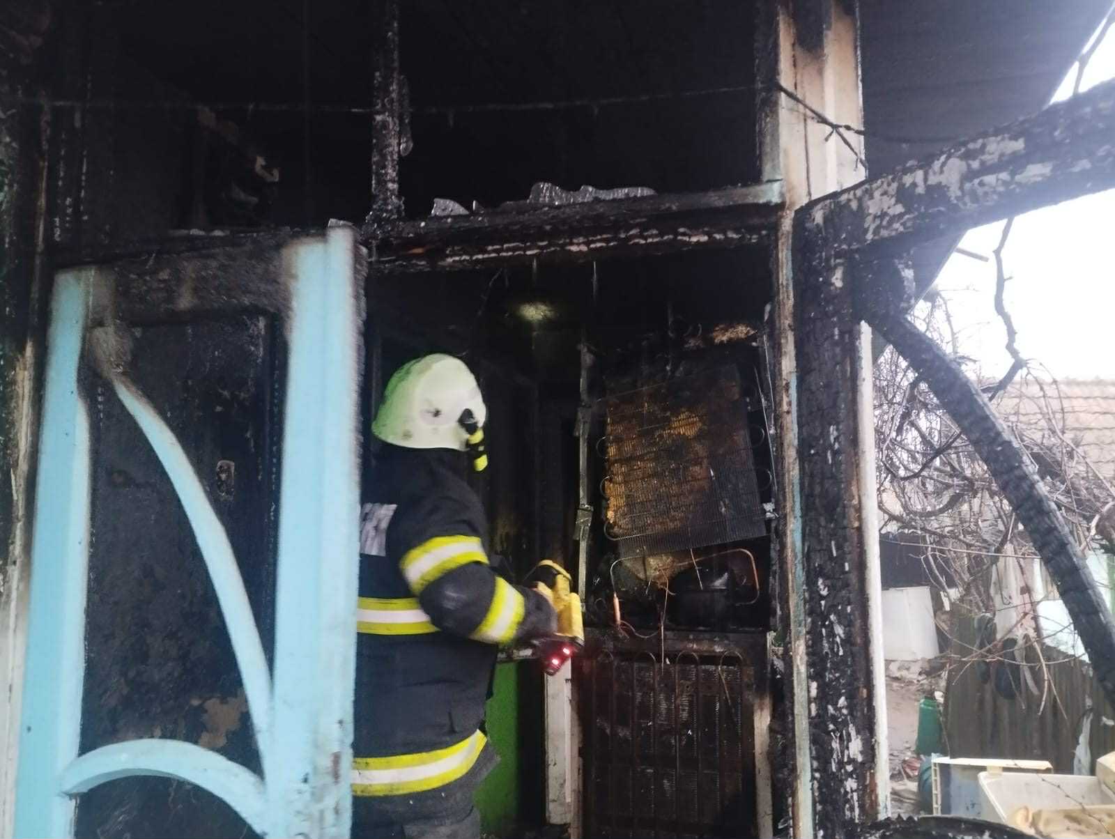 Casă distrusă de un incendiu, proprietarul îngrijit de un echipaj SMURD