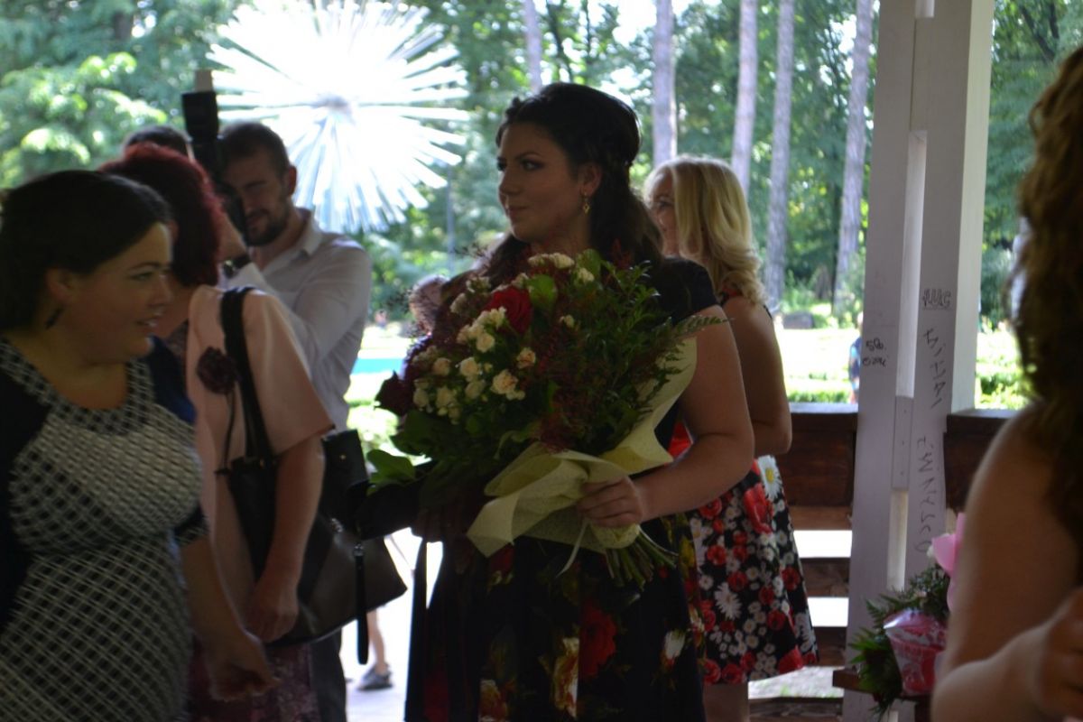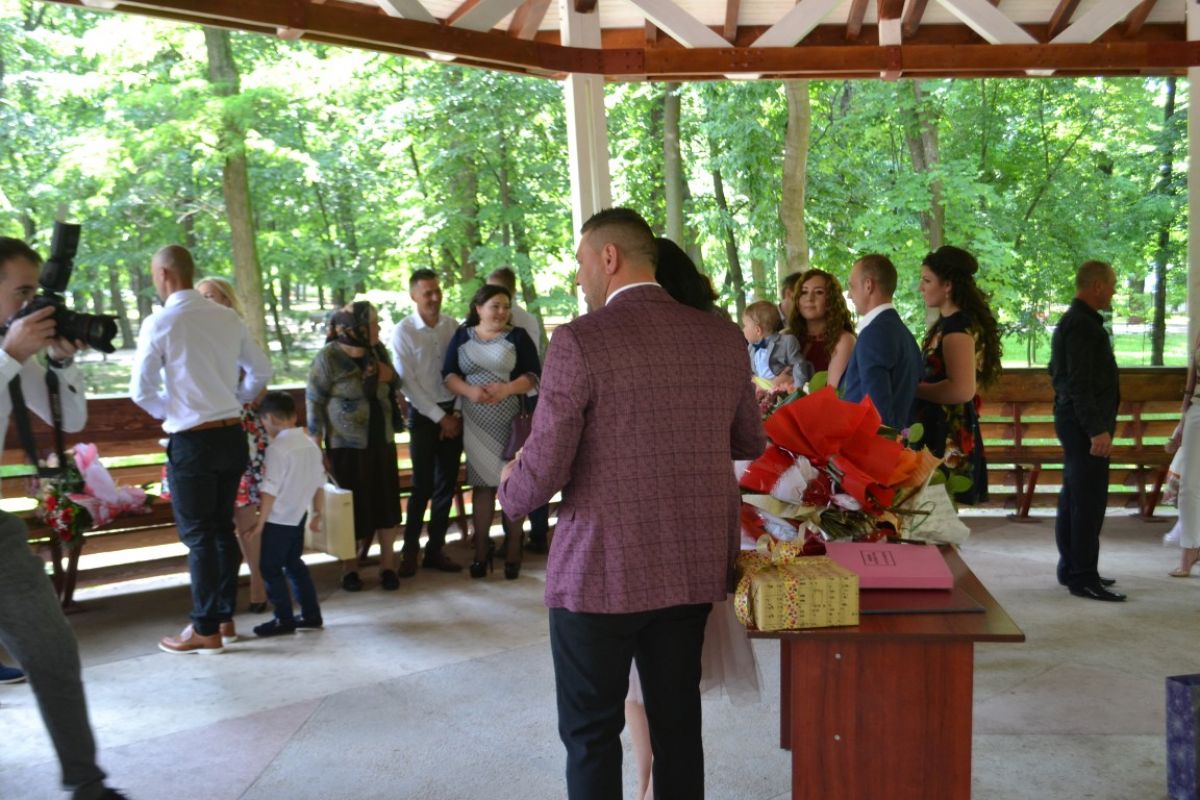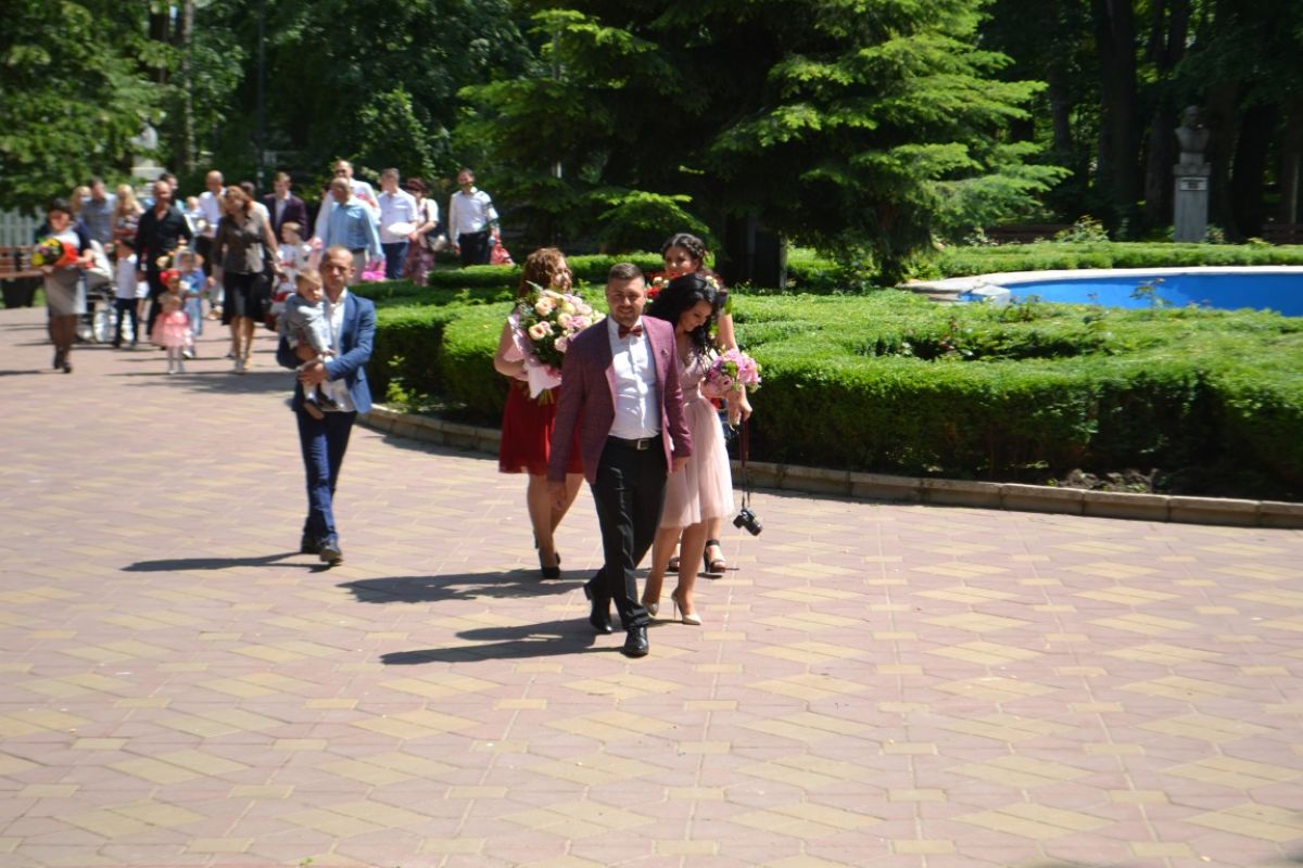 După ce oficial au fost declarați soț și soție, tinerii, pe fondul unor celebre valsuri au primit felicitările celor dragi. Unii chiar au și dansat. S-au desfăcut sticle de șampanie și s-au servit prăjituri delicioase. Și, bineînțeles, sute de fotografii în peisajul verde din grădina publică a orașului. (G.E.)