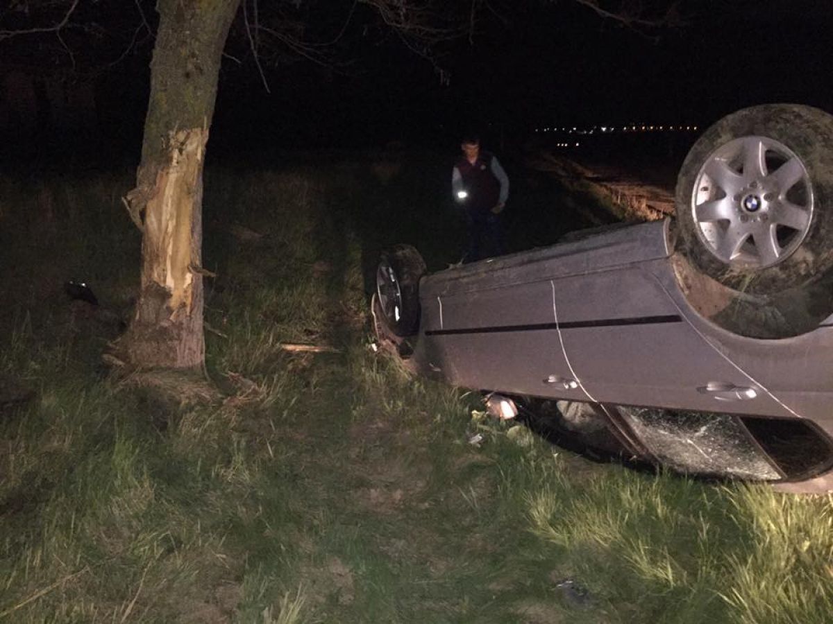 Conducătorul auto a fost norocos pentru că a scăpat cu viață. A ieșit pe picioarele lui din autoturismul marca BMW, a scos plăcuțele de înmatriculare și a părăsit locul.