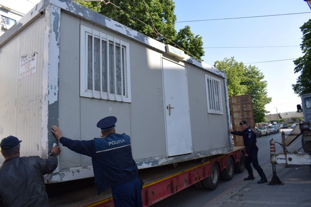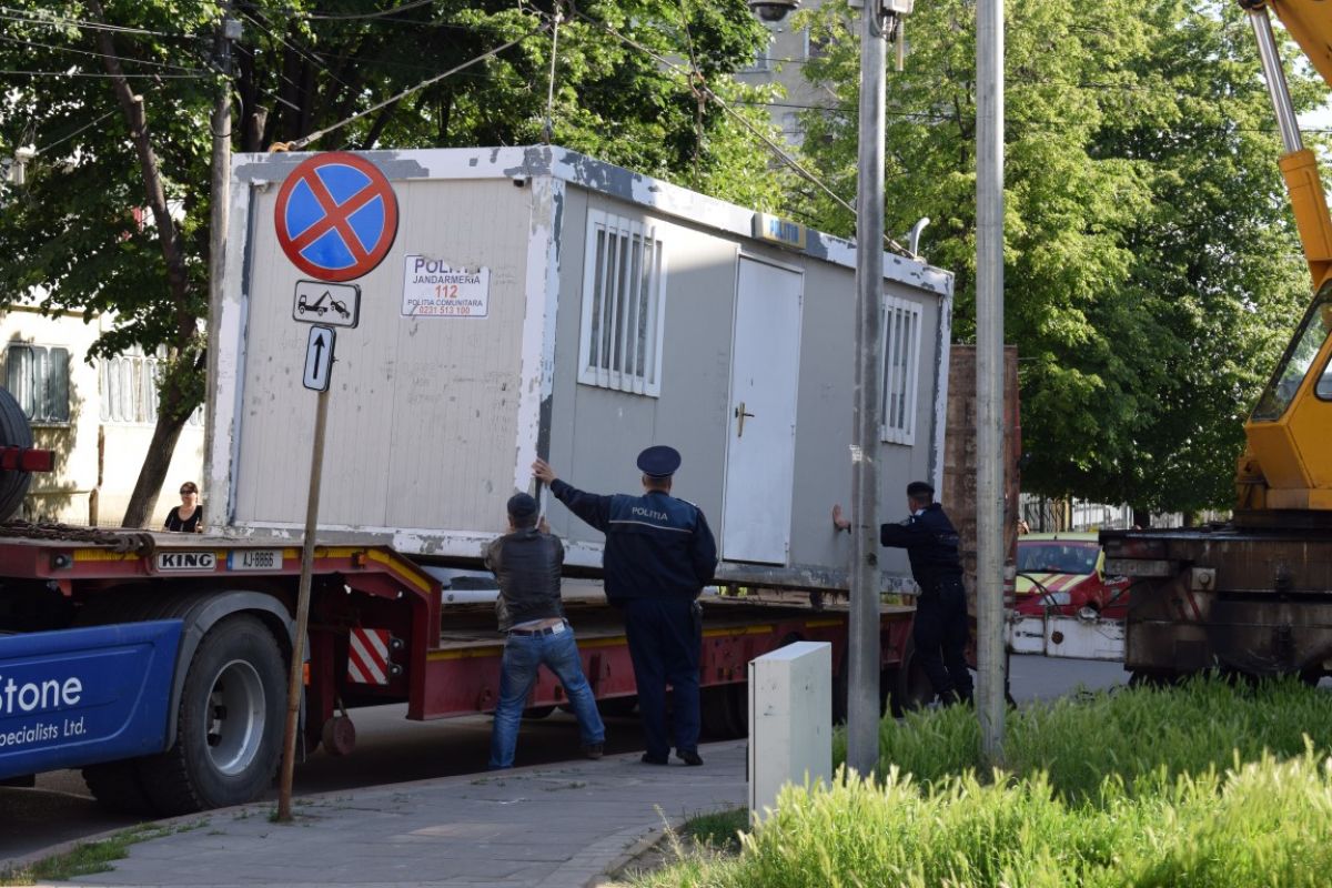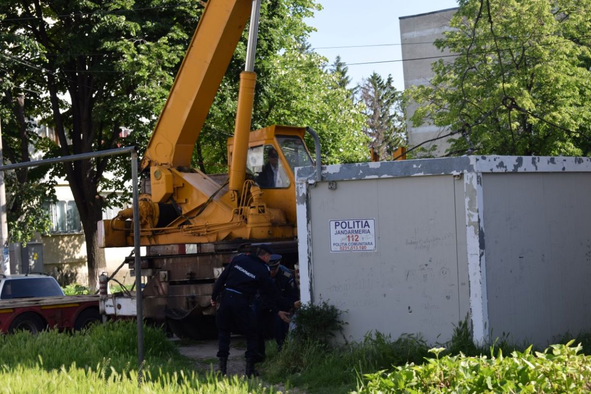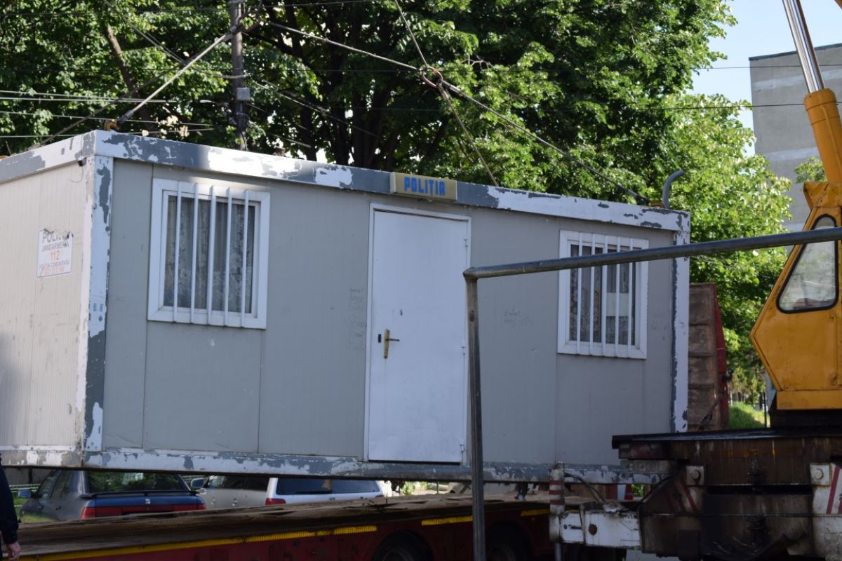 Punctul de lucru al polițiștilor din cadrul Inspectoratului de Poliție Județean, de lângă ghetouri, a fost ridicat ieri cu o macara.