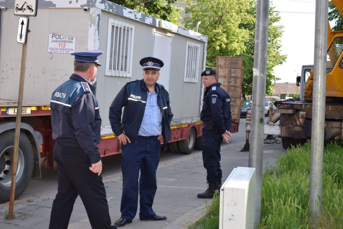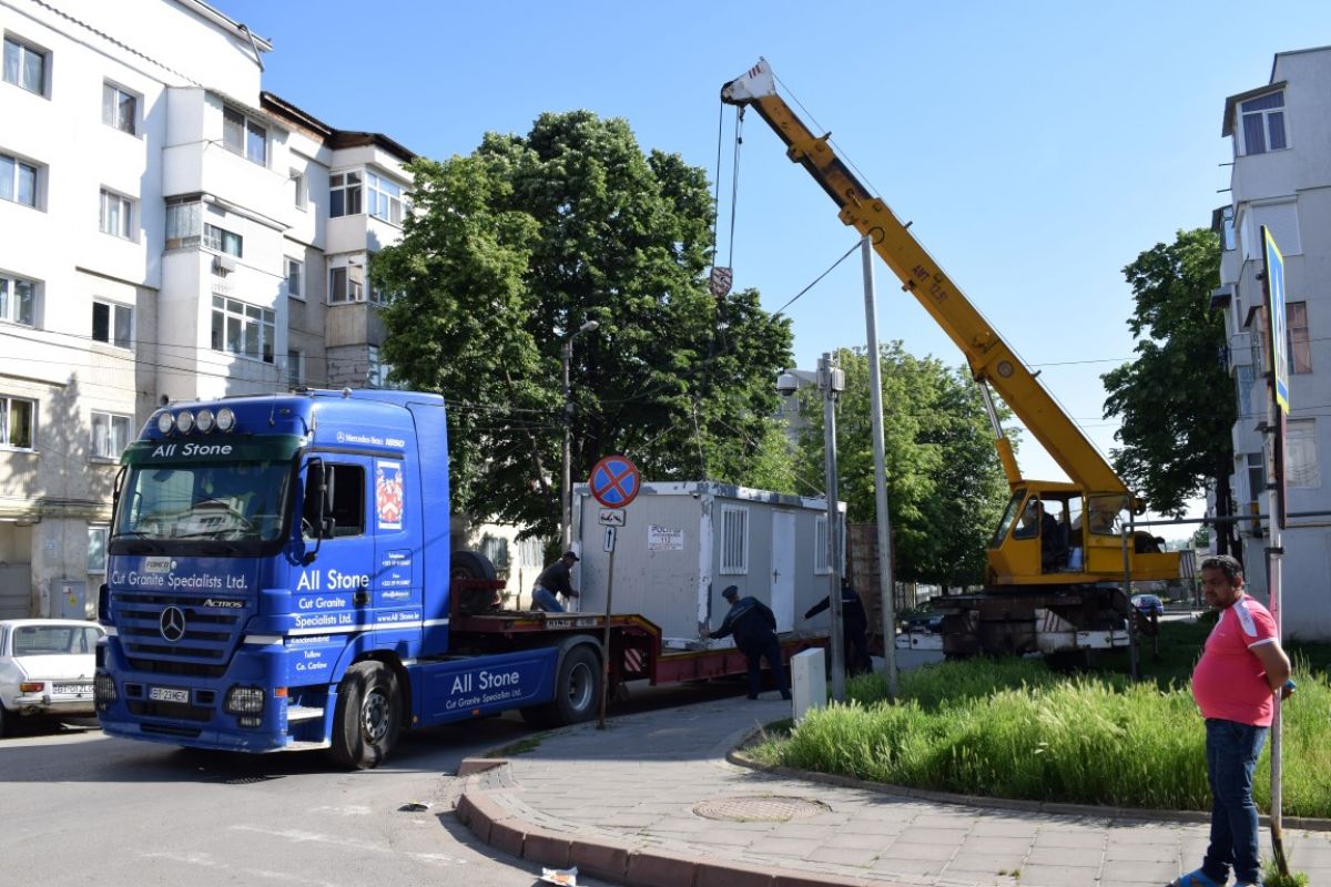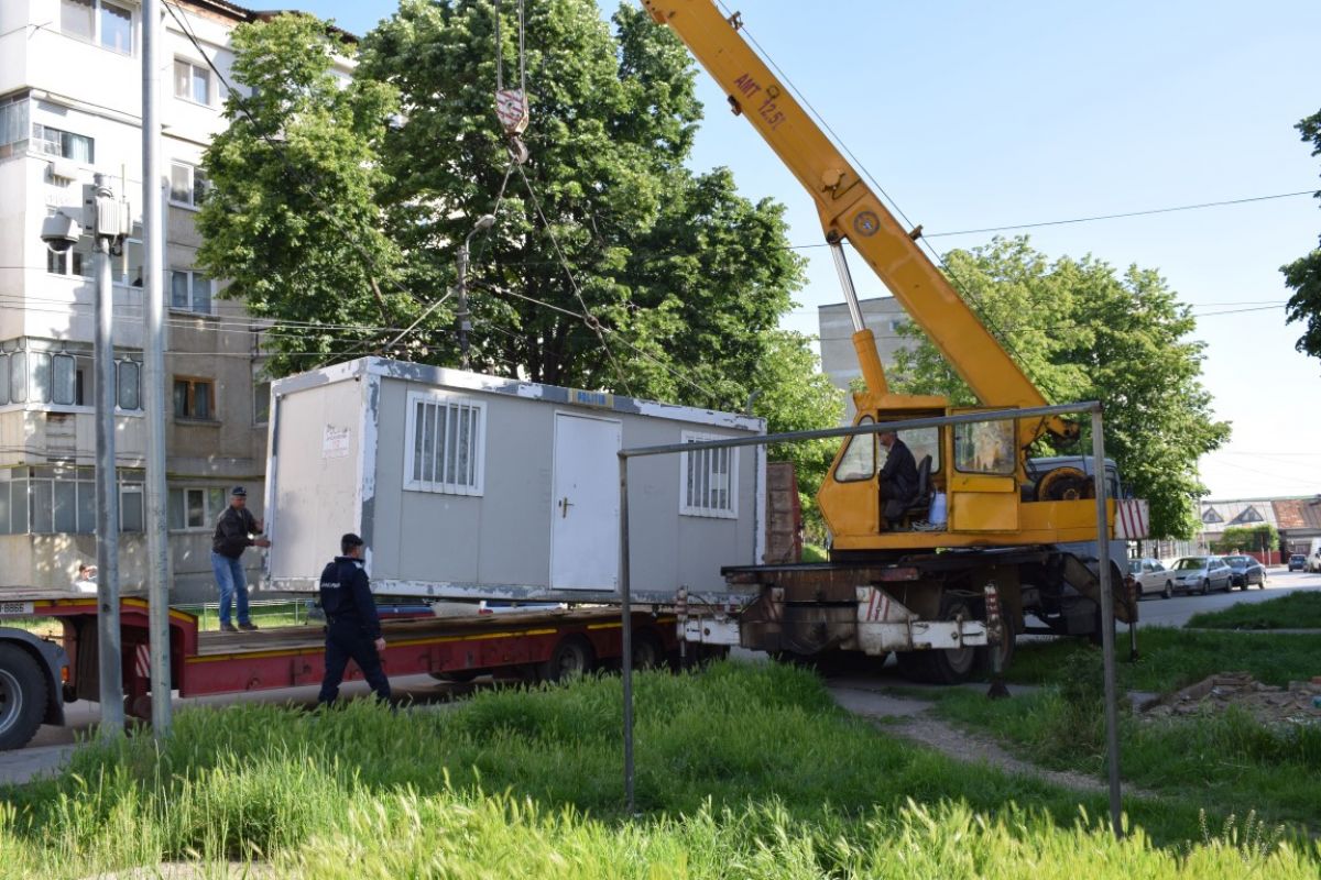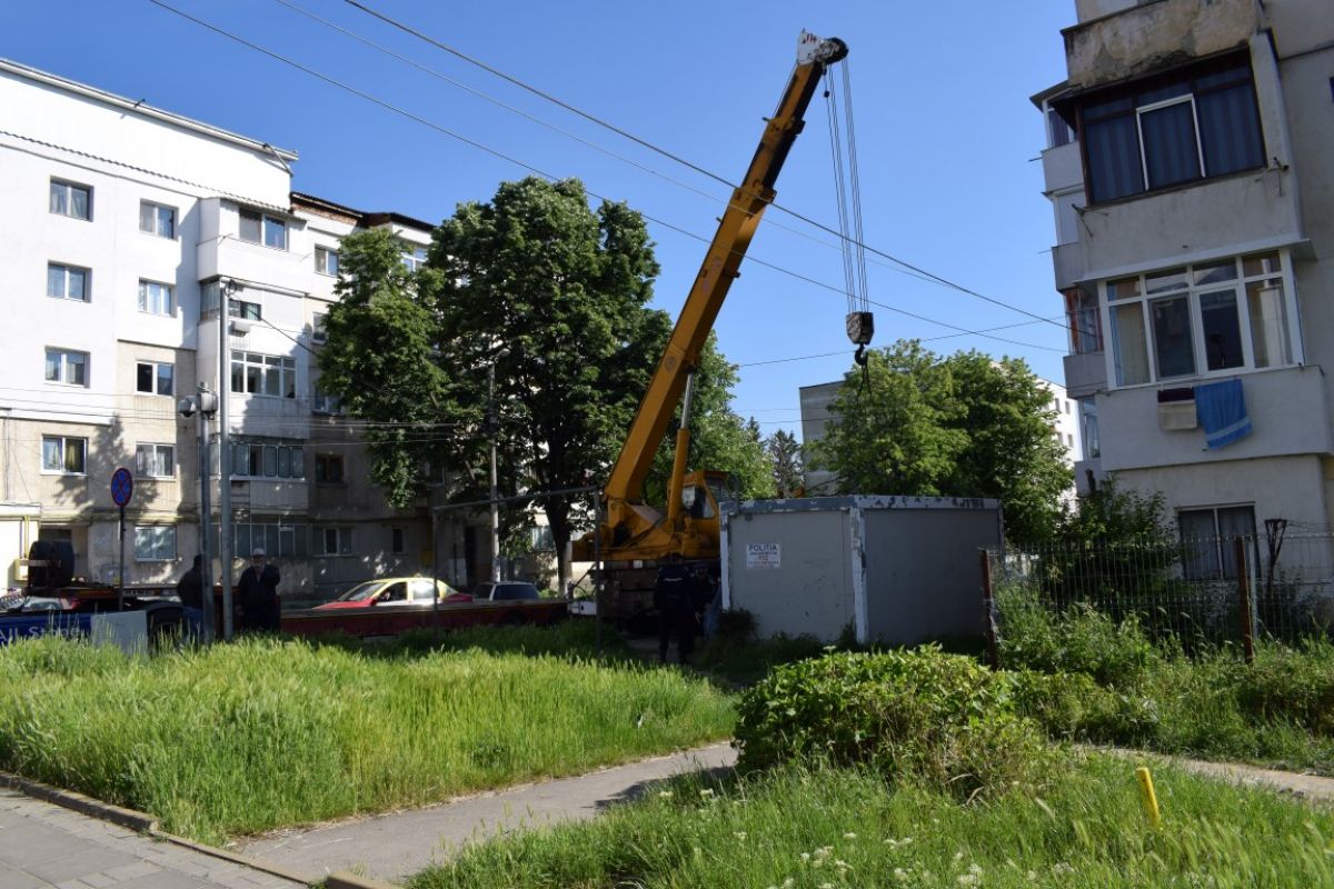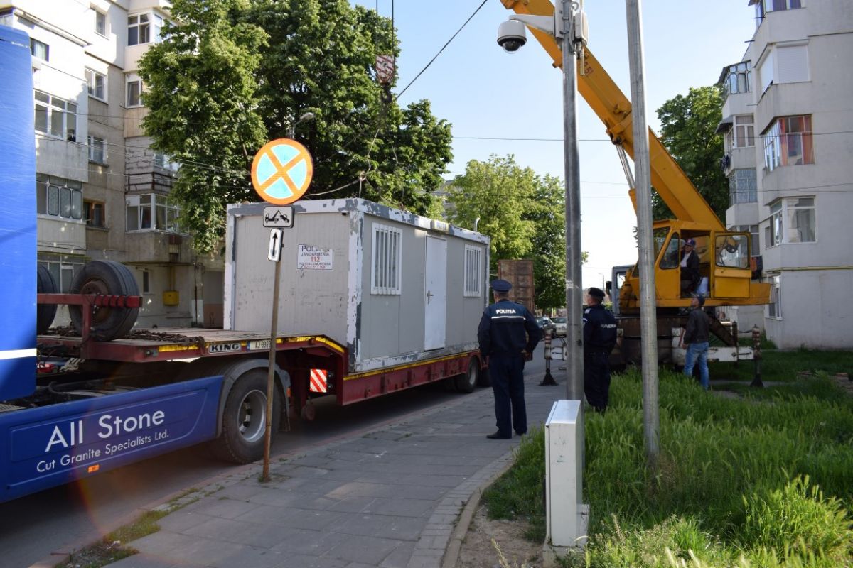 Punctul de lucru al polițiștilor din cadrul Inspectoratului de Poliție Județean, de lângă ghetouri, a fost ridicat ieri cu o macara.