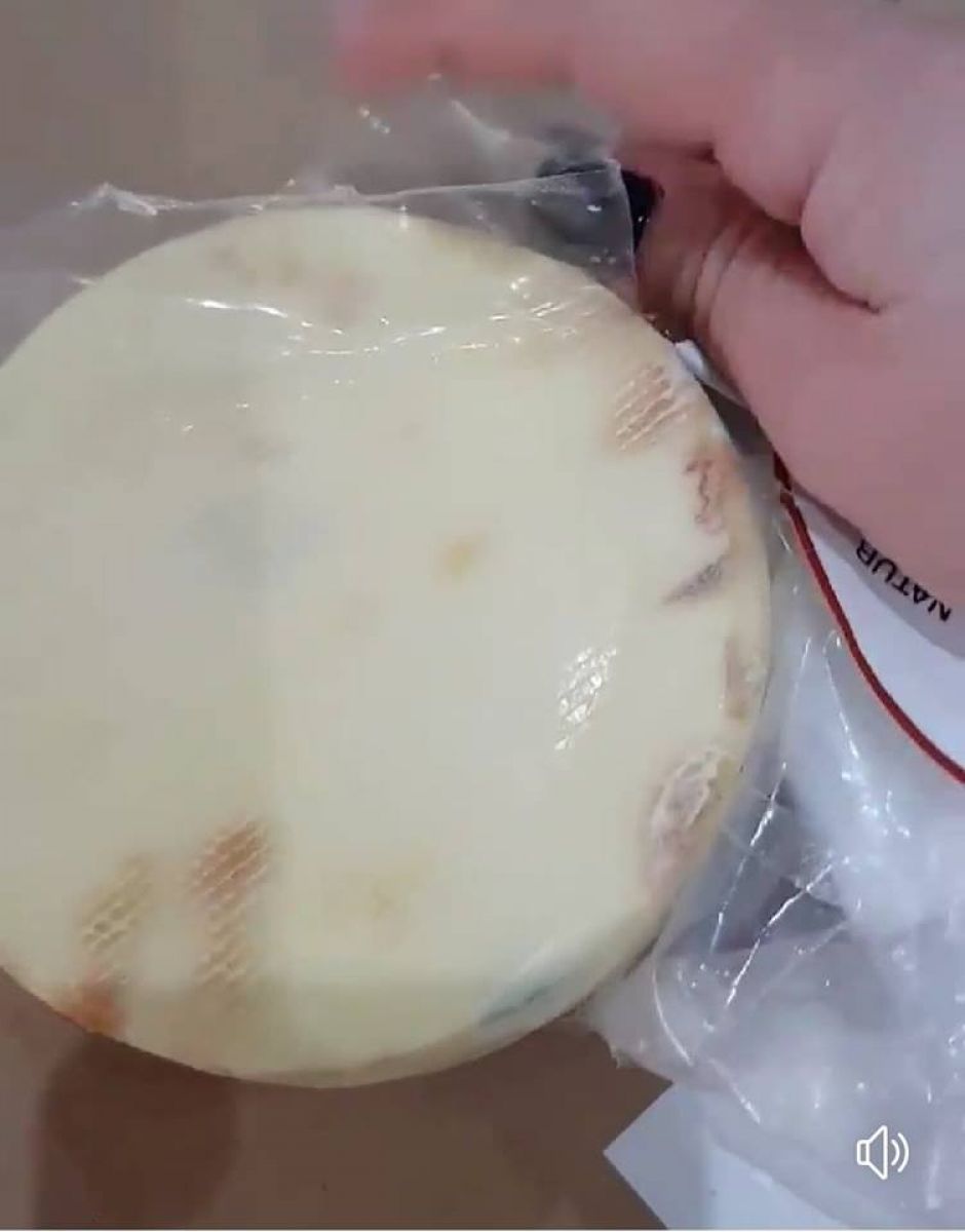 Femeia a postat un anunț pe o rețea de socializare însoțit de un filmuleț în care se vedea foarte clar că respectiva rolă de cașcaval avea pe margini mucegai. Aceasta susține că a cumpărat produsul de la un magazin din zona Grivița.