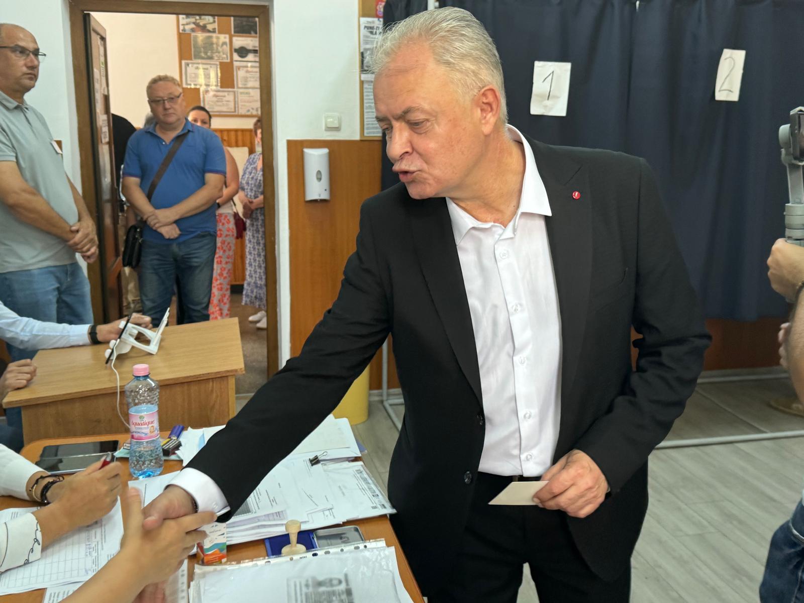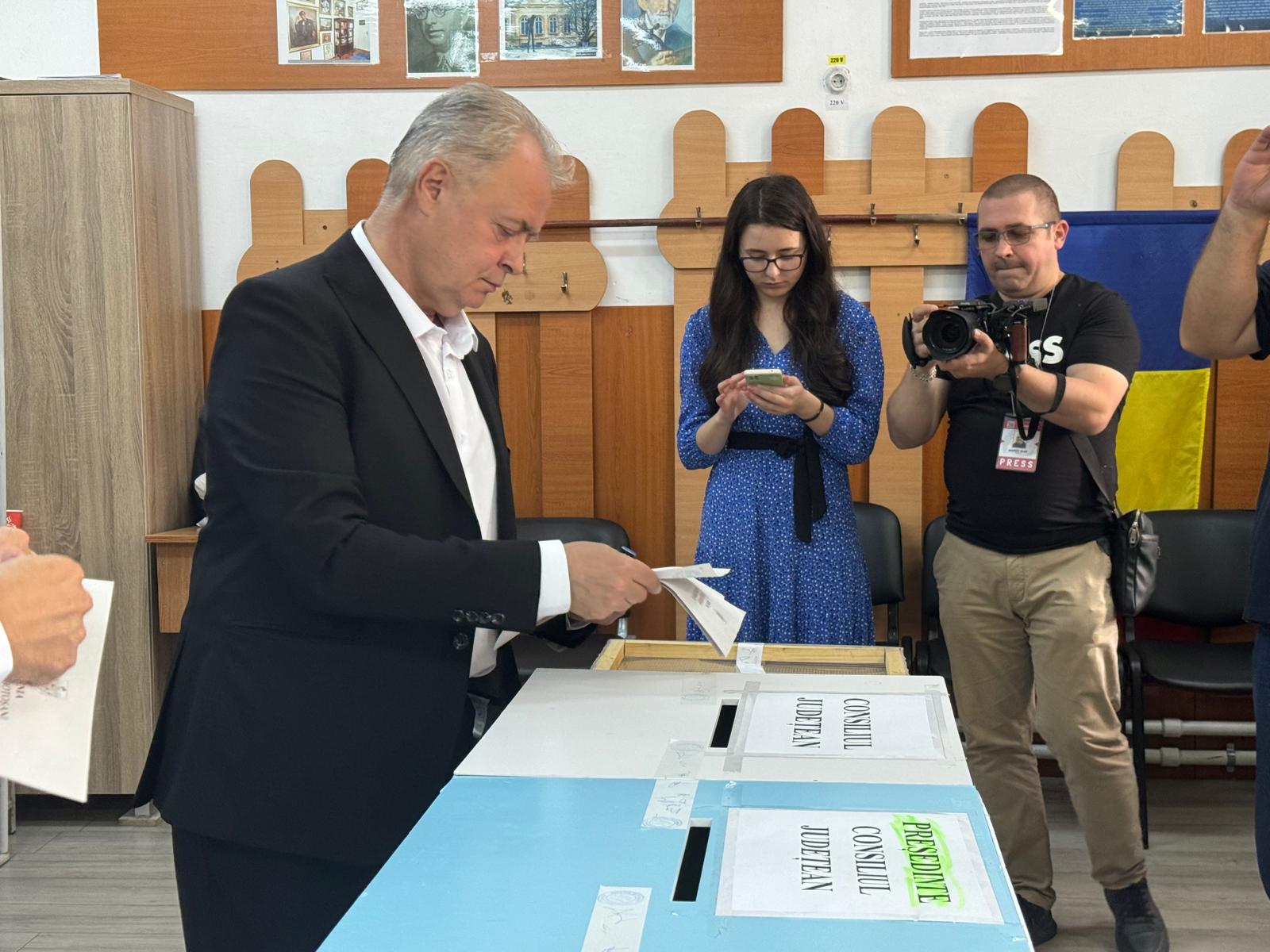 Candidatul a venit la vot alături de soția Gabriela și de doi dintre cei trei fii ai săi, Cosmin și Mircea, care a venit cu fiica sa, nepoata candidatului.