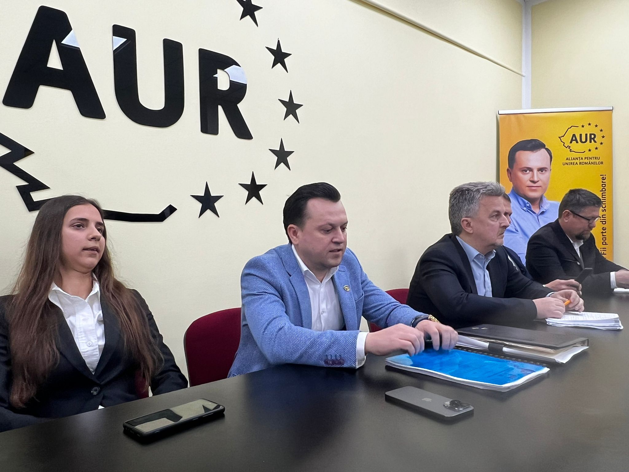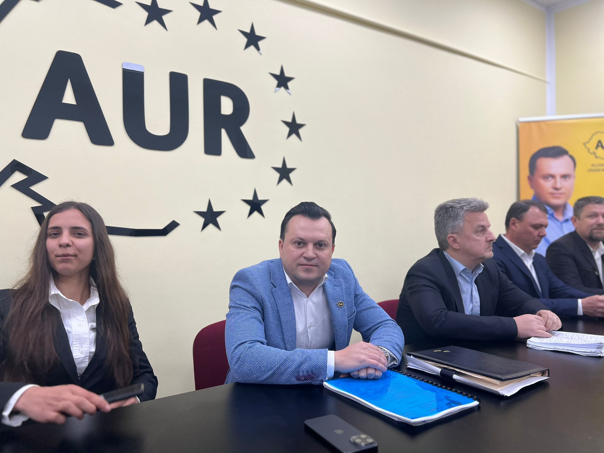 Cătălin Silegeanu a venit alături de Ariadna Cîrligeanu, coordonatorul filialei județene dar și de Radu Vicențiu Grădinaru, deputat AUR.