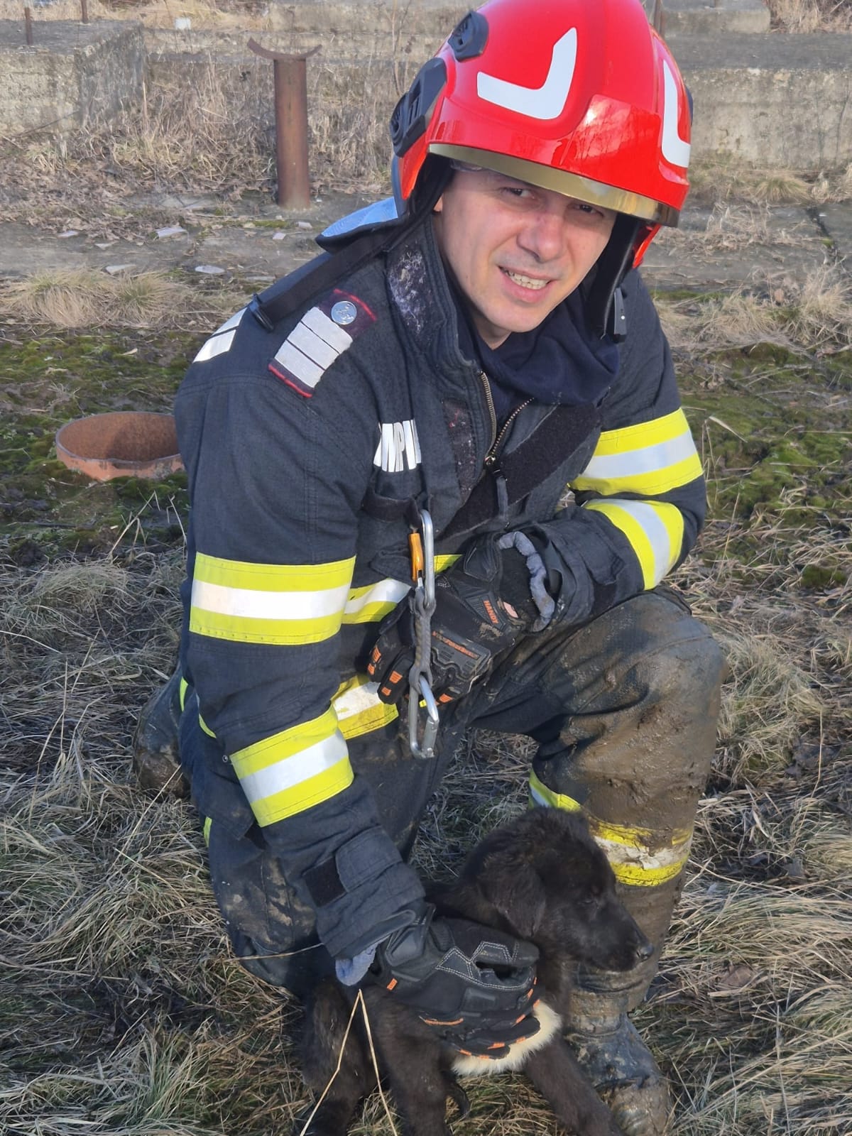 Mai bine de o oră și jumătate, pompierii au încercat să ajungă la cățel, folosind accesorii specifice și încercând să-l ademenească cu mâncare. În cele din urmă, după momente tensionate, patrupedul a prins curaj și s-a apropiat suficient pentru ca salvatorii să-l scoată la suprafață, în siguranță.